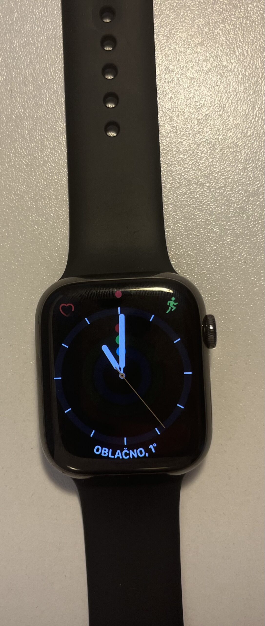 K hodinkám prodám také náramek (temně inkoustový silikonový Apple náramek) a nabíjecí puk (od Applu). Hodinky jsou nepoškozené, nejsou vidět žádné škrábance na displeji či jiná poškození na těle samotných hodinek. Stav baterie je 83%. Hodinky umožnují funkci cellular (LTE)