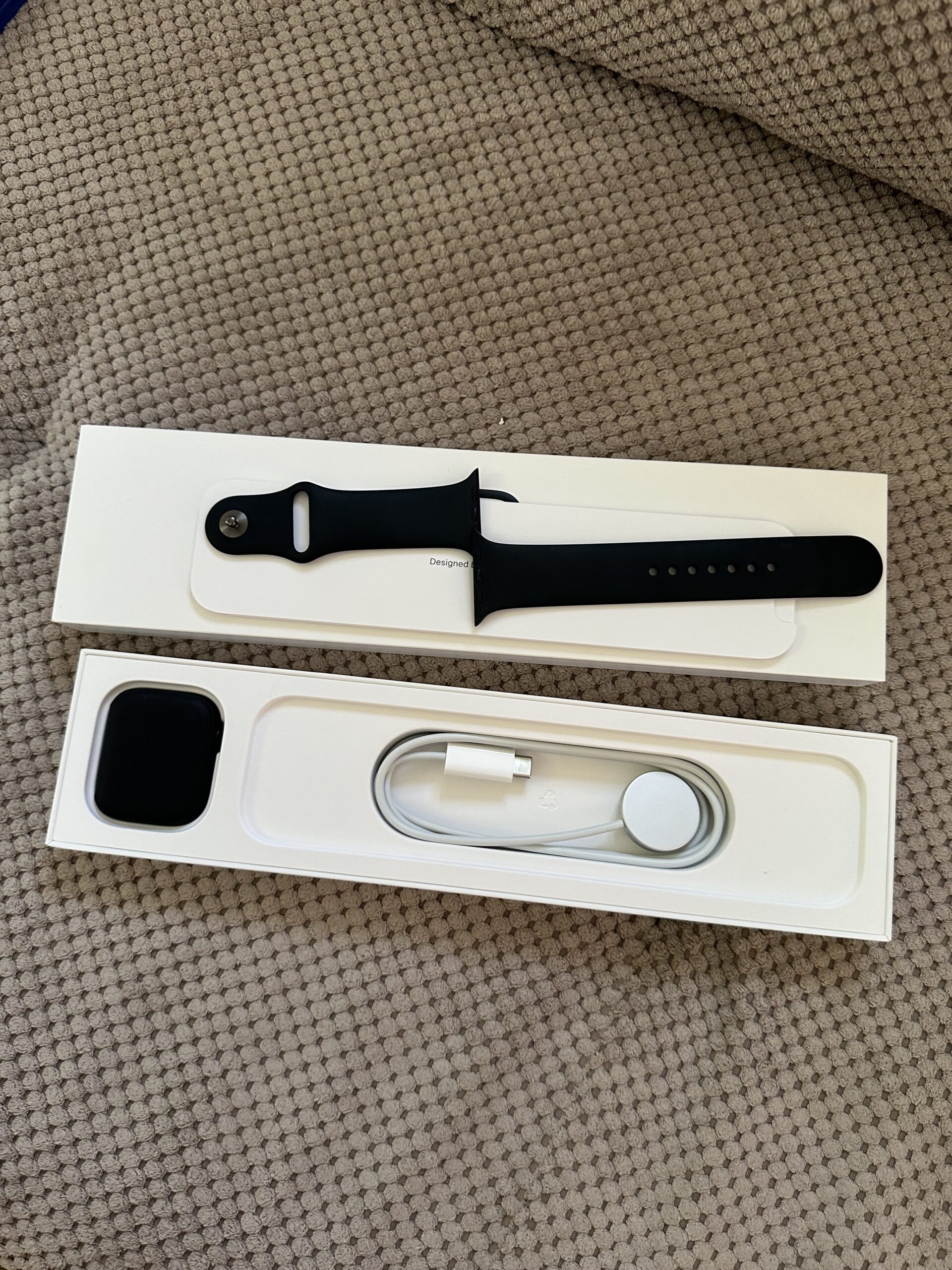Predám bežne používané Apple Watch 7 série, veľkosť 45mm vo farbe Midnight spolu s kompletným balením vrátane nabíjacieho káblu a midnight remienku.
