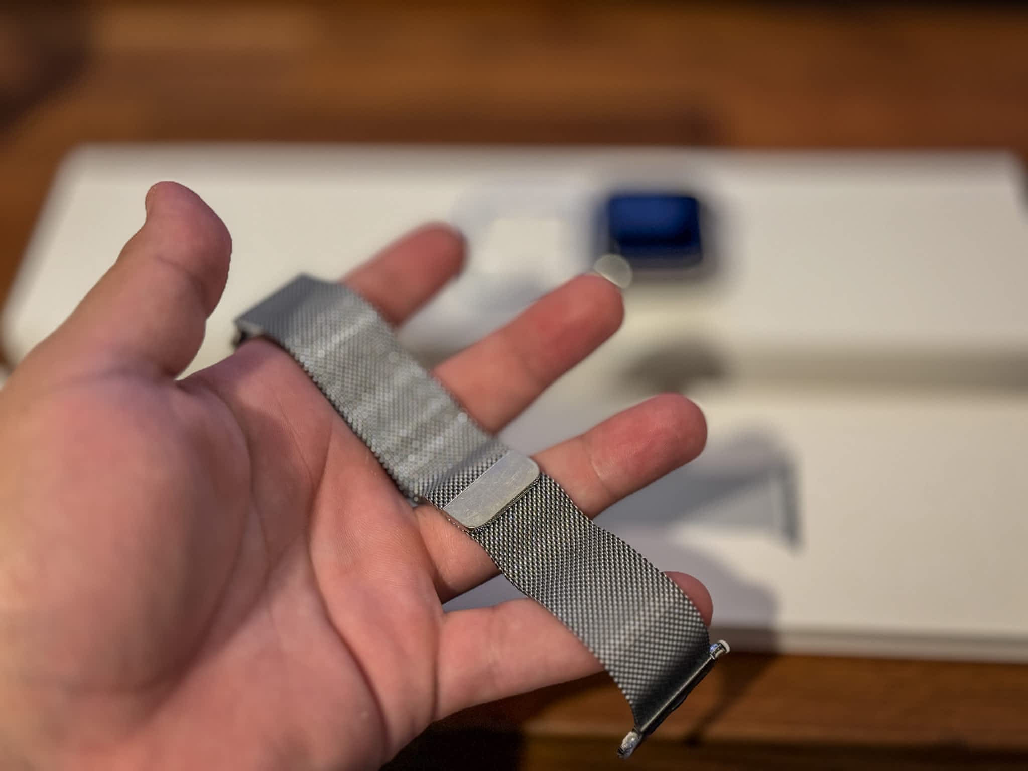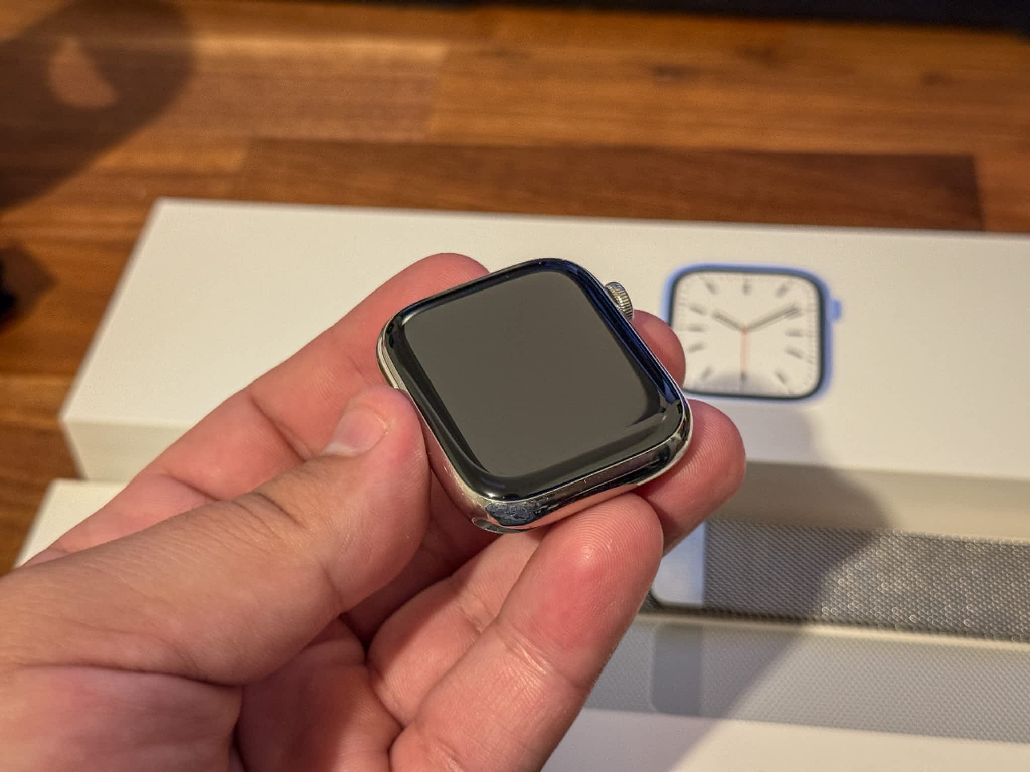 Prodám Apple Watch Series 7 ve verzi GPS + Cellular ve stříbrném provedení z nerezové oceli. Pásek je Milánský tah také ze stříbrné nerezové oceli, elegantní a pohodlný na nošení.