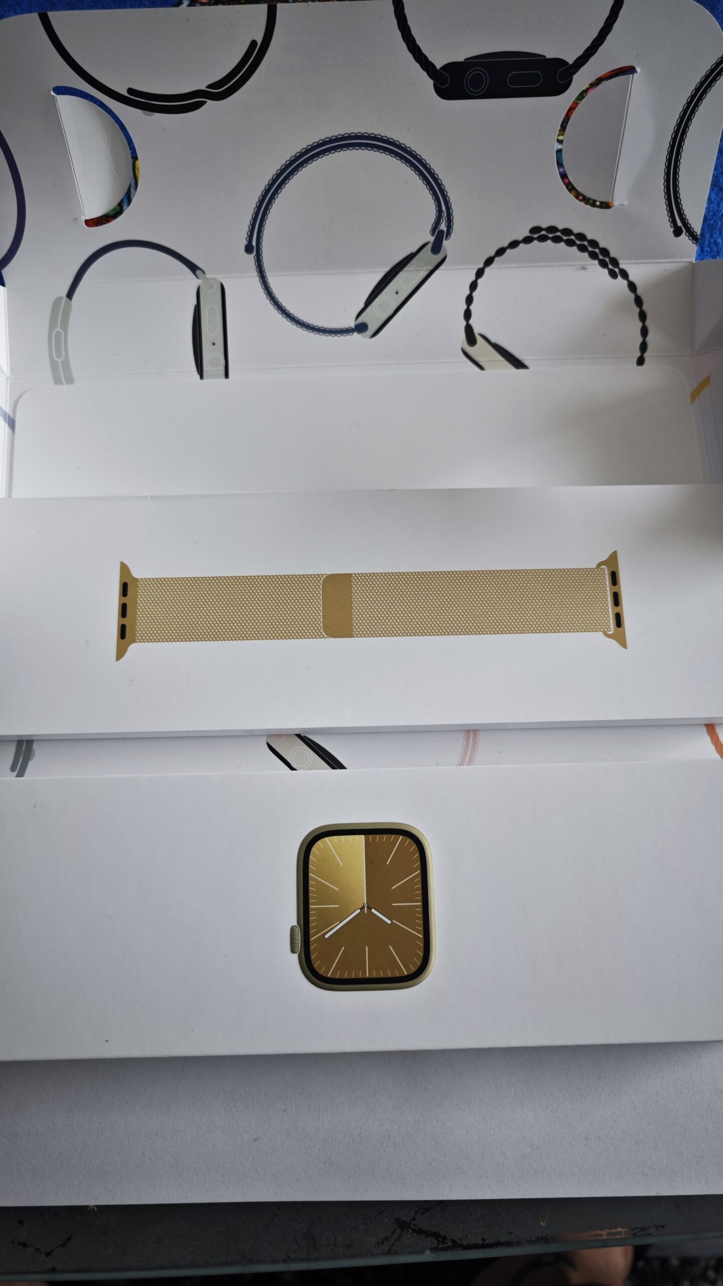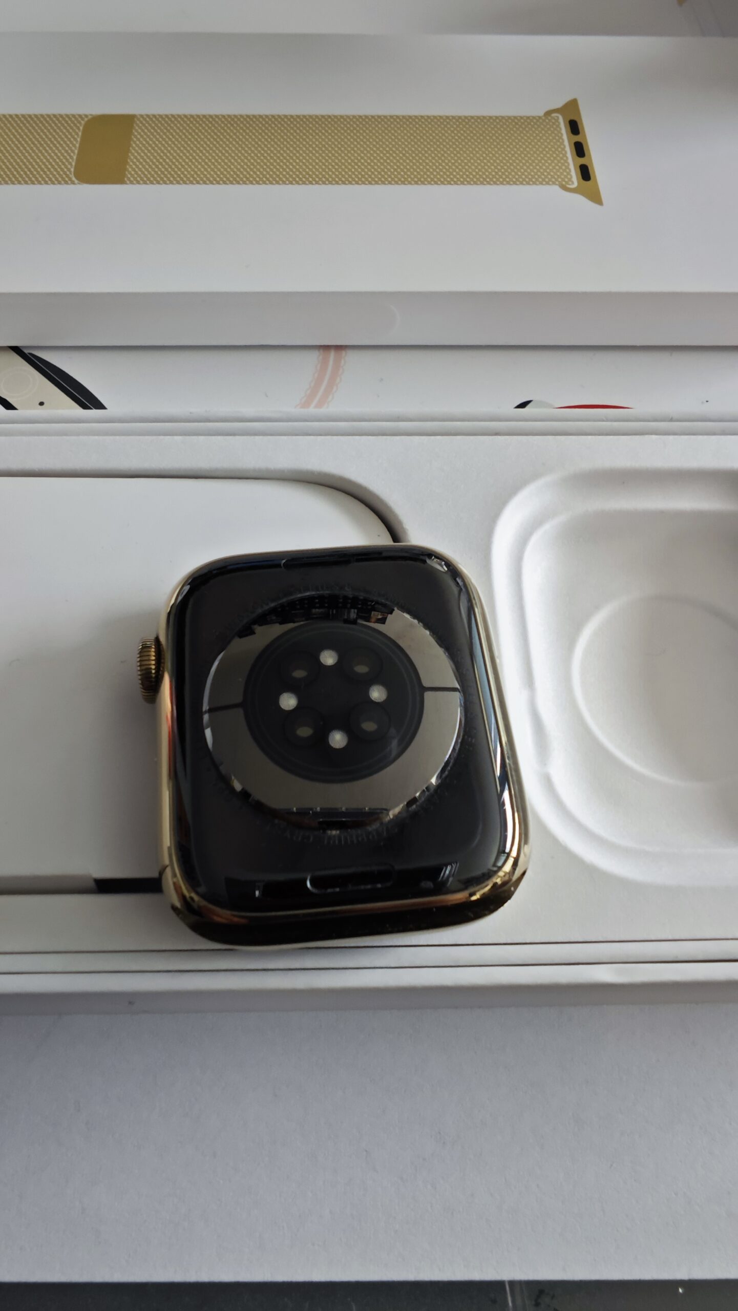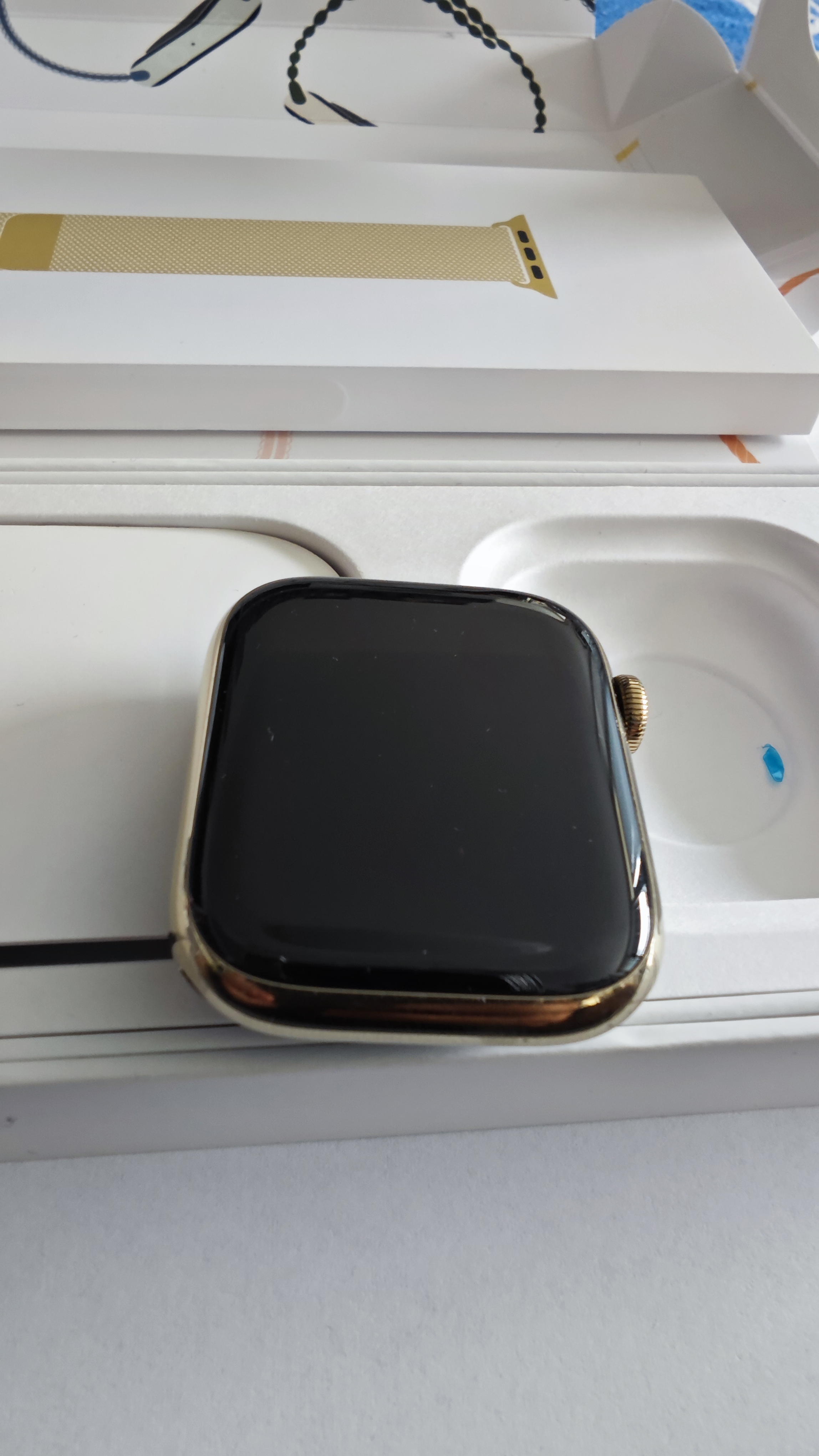 Prodam chytre hodinky Apple Watch Series 8 GPS + Cellular 45mm zlaté pouzdro z nerezové oceli se zlatým milánským tahem. MNKQ3CS/A. Malo pouzivane, 100% stav. Cena 16.000,- Kc.