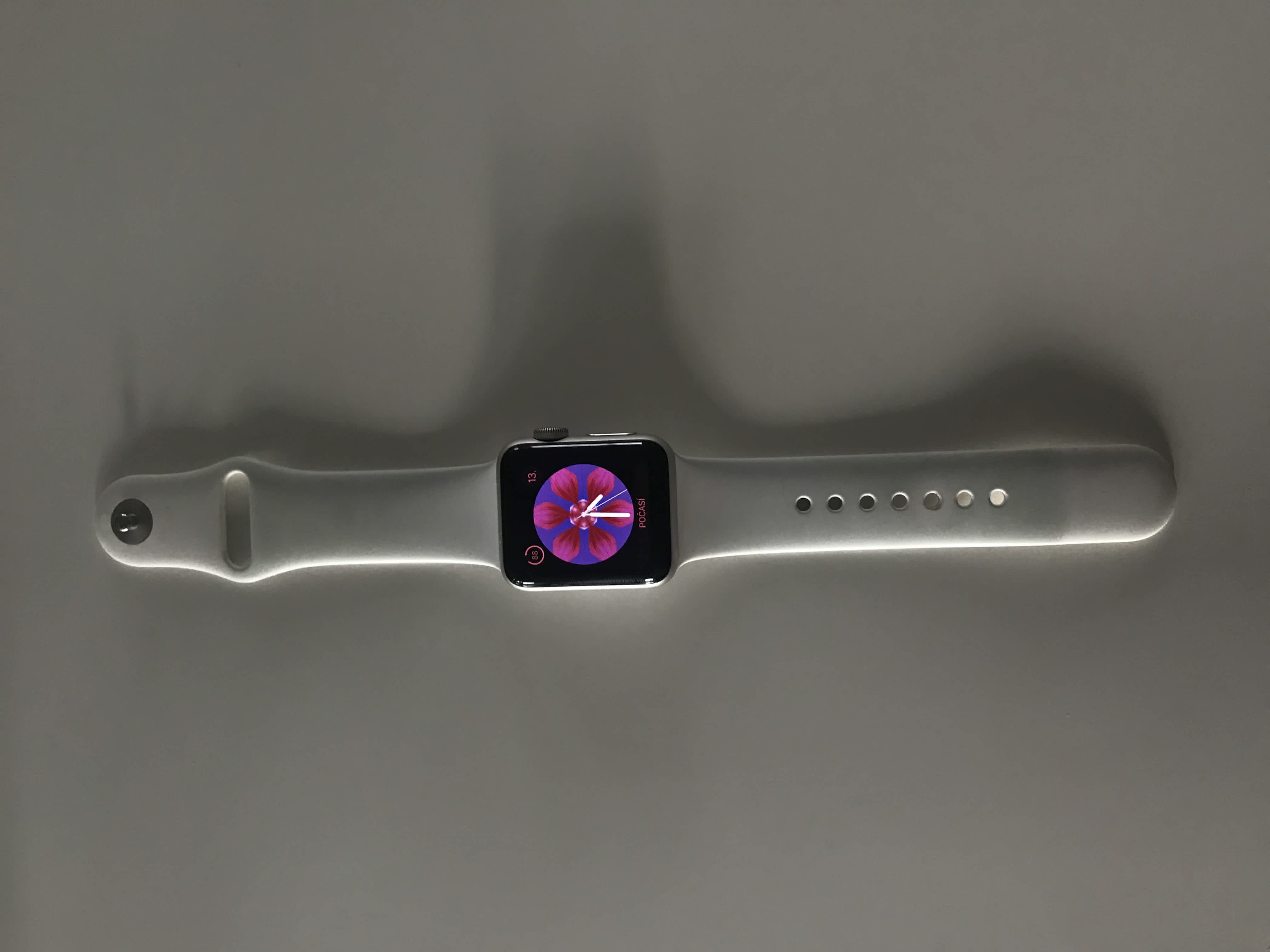Jedná se o model Sport Series 2 Silver Aluminium 38mm s bílým páskem. Hodinky jsou plně funkční a bez jakéhokoliv poškození.