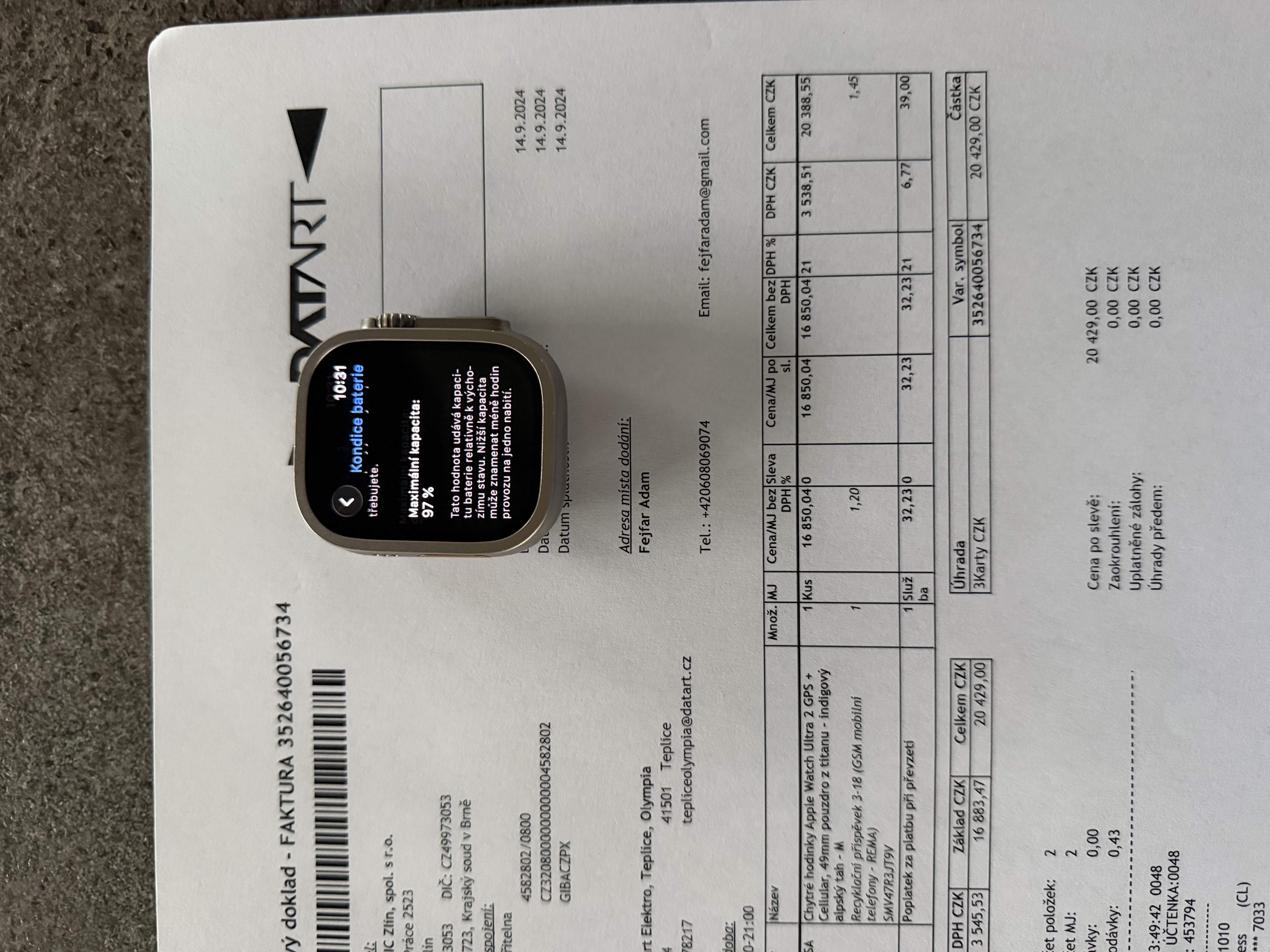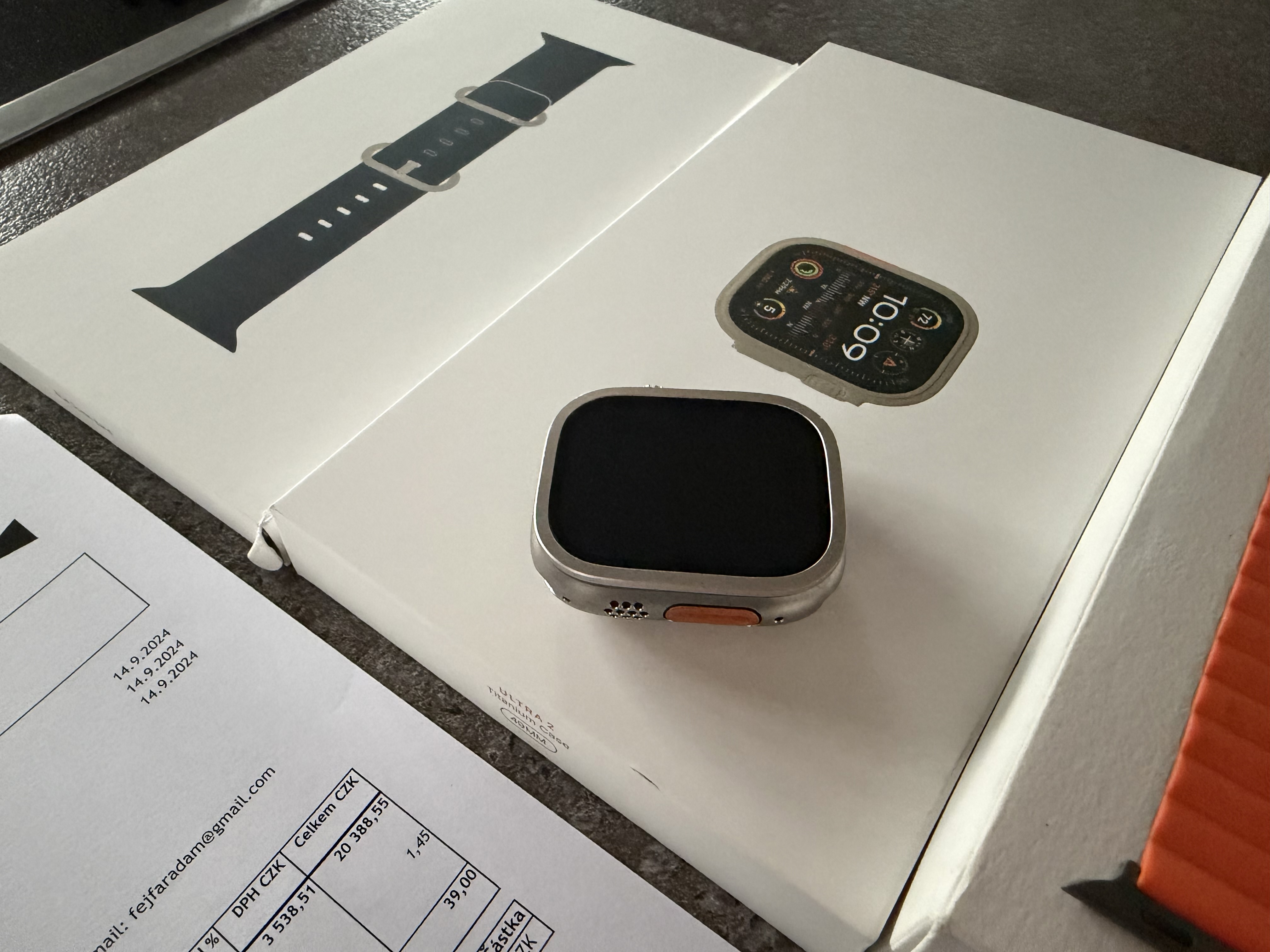 Prodam chytre hodinky apple watch ultra 2 serie,super stav,vzdy noseny s ochrannym rameckem a krycim sklem na displeji.Kompletni baleni s nabijeckou a 2 řeminky.Doklad o koupi z datartu se zarukou do 14.9.2026.Kapacita baterie 97%