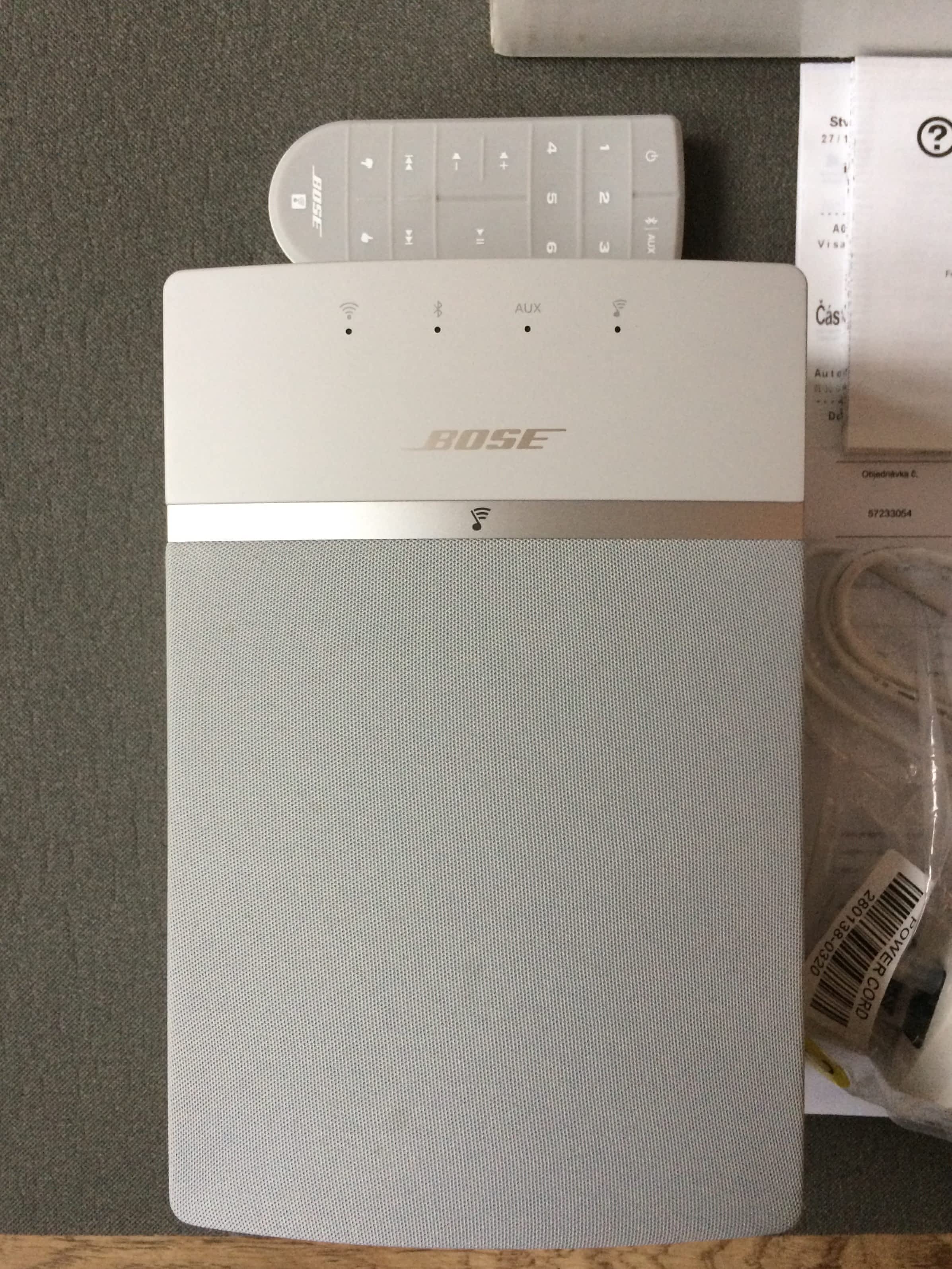 Famózní reproduktor s dálkovým ovladačem od Bose. Stav 98% (škrabanec) se zárukou cca rok. 100% funkční, hraje famózně, velmi praktické dálkové ovládání + ovládání z mobile, watch…