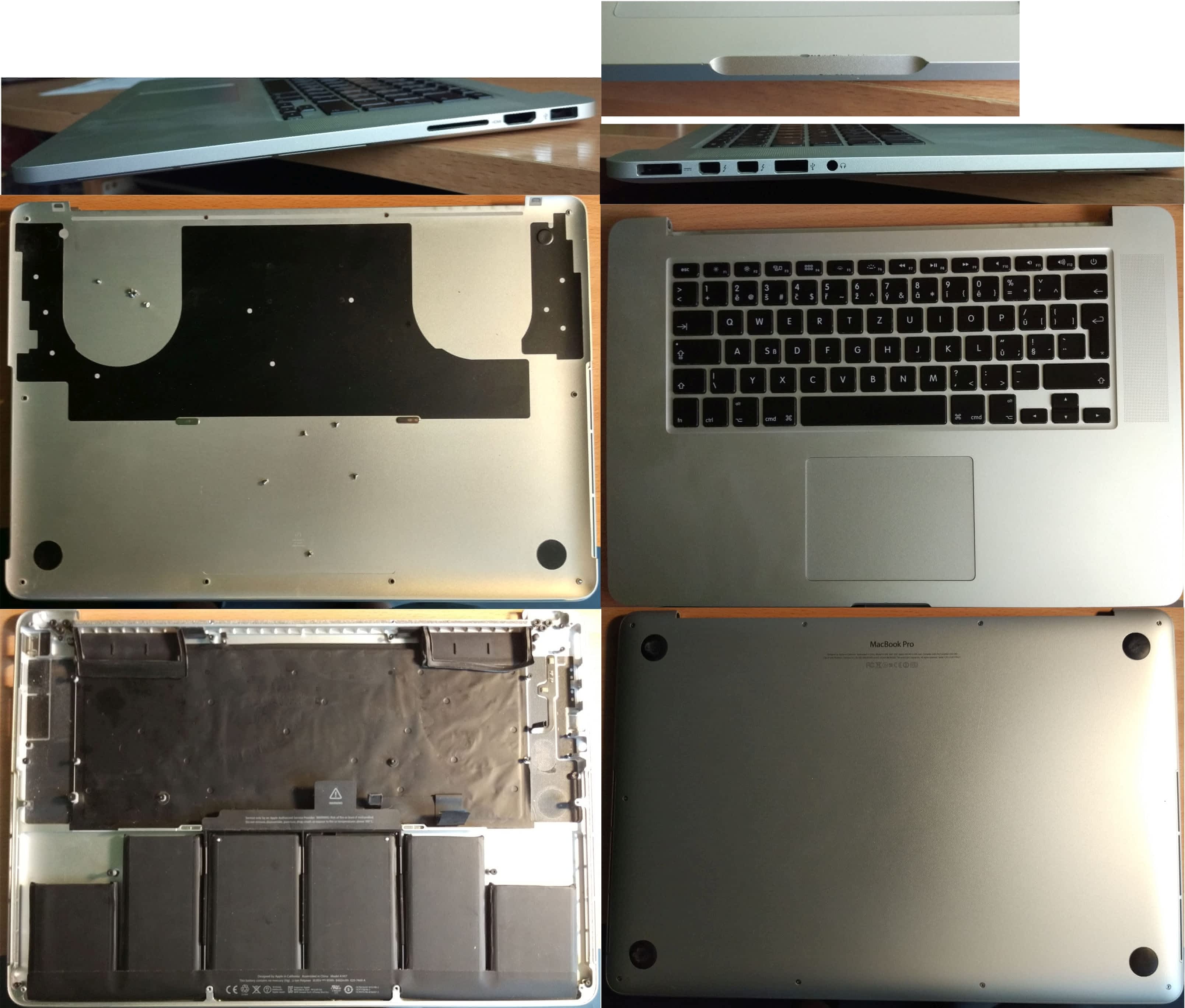 kompletní chasis (bottom cover, top cover + klávesnice + touchpad) z Apple MacBook Pro 15 Retina (mid 2012) A1398.