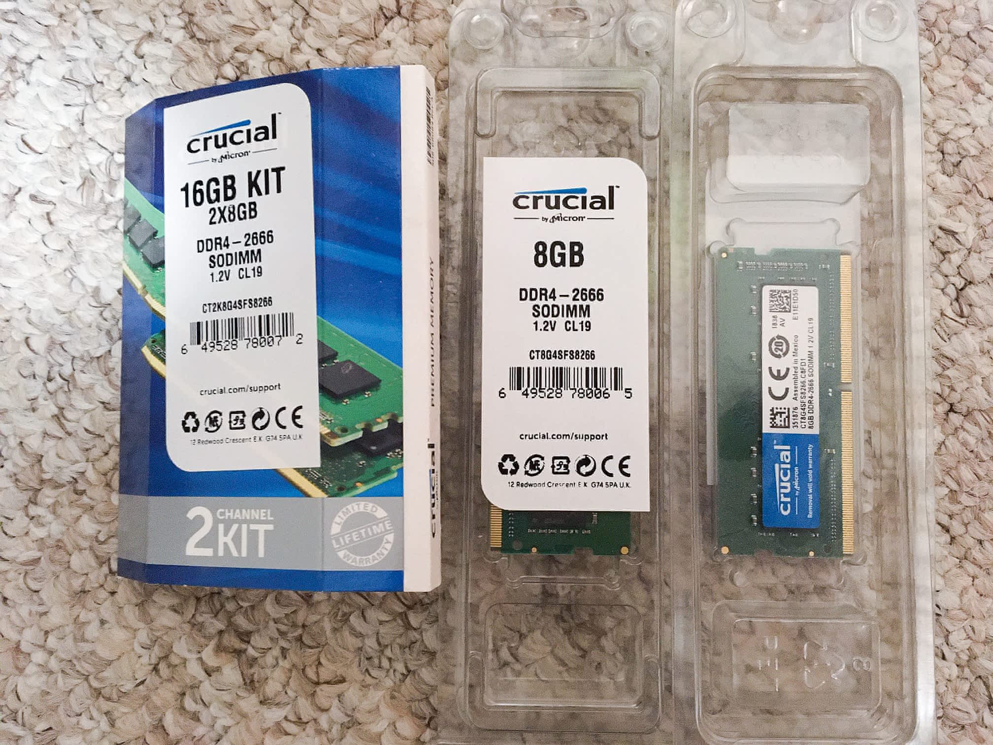 Prodám 2 x 8GB DDR4 2666Mhz Crucial z důvodu upgradování. Doživotní záruka v CzC. Kupované 6.12. 2018 v Praze. Vhodné do Imacu 2019 nebo Macmini 2018.