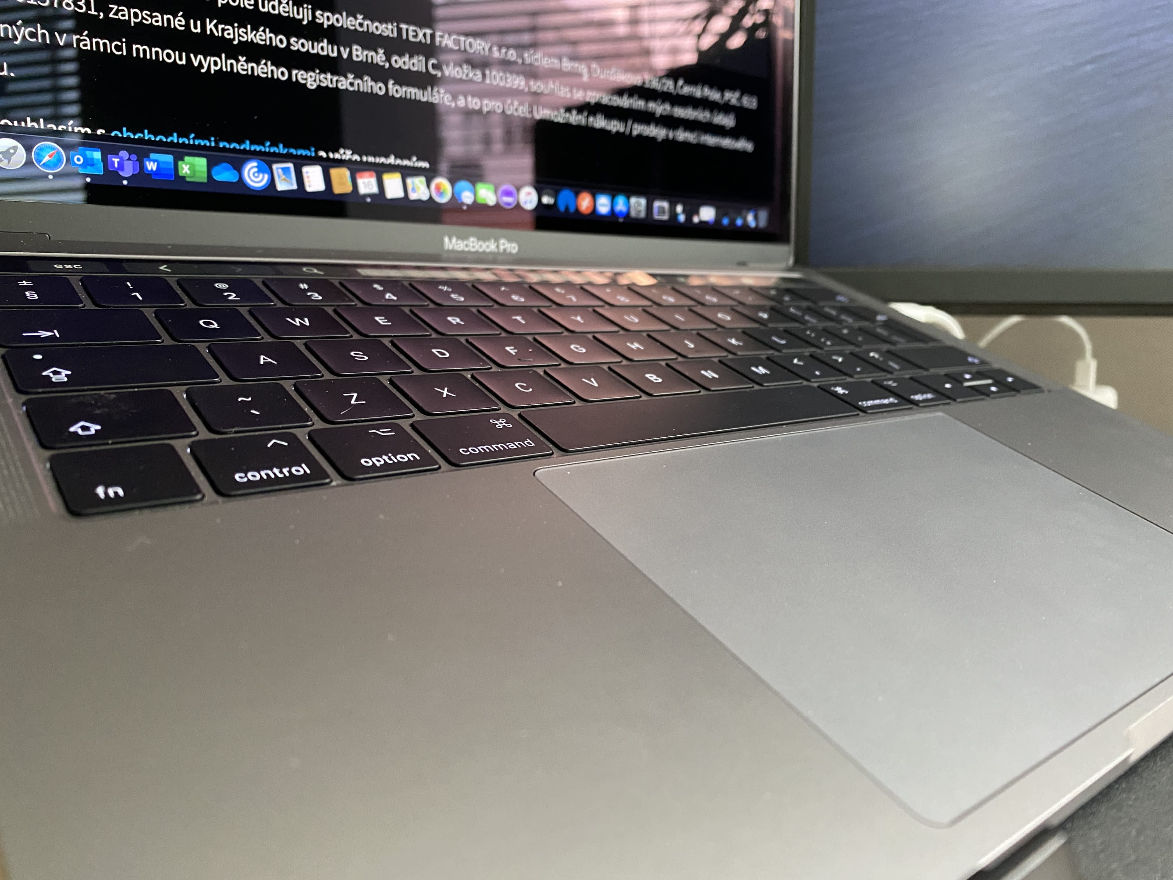 Prodám CTO MacBook Pro 13" 256 GB SSD 16GB INT klávesnice, Touch Bar , po roce vyměněna klávesnice za zcela novou včetně baterky, která má 39 cyklů, top stav.
