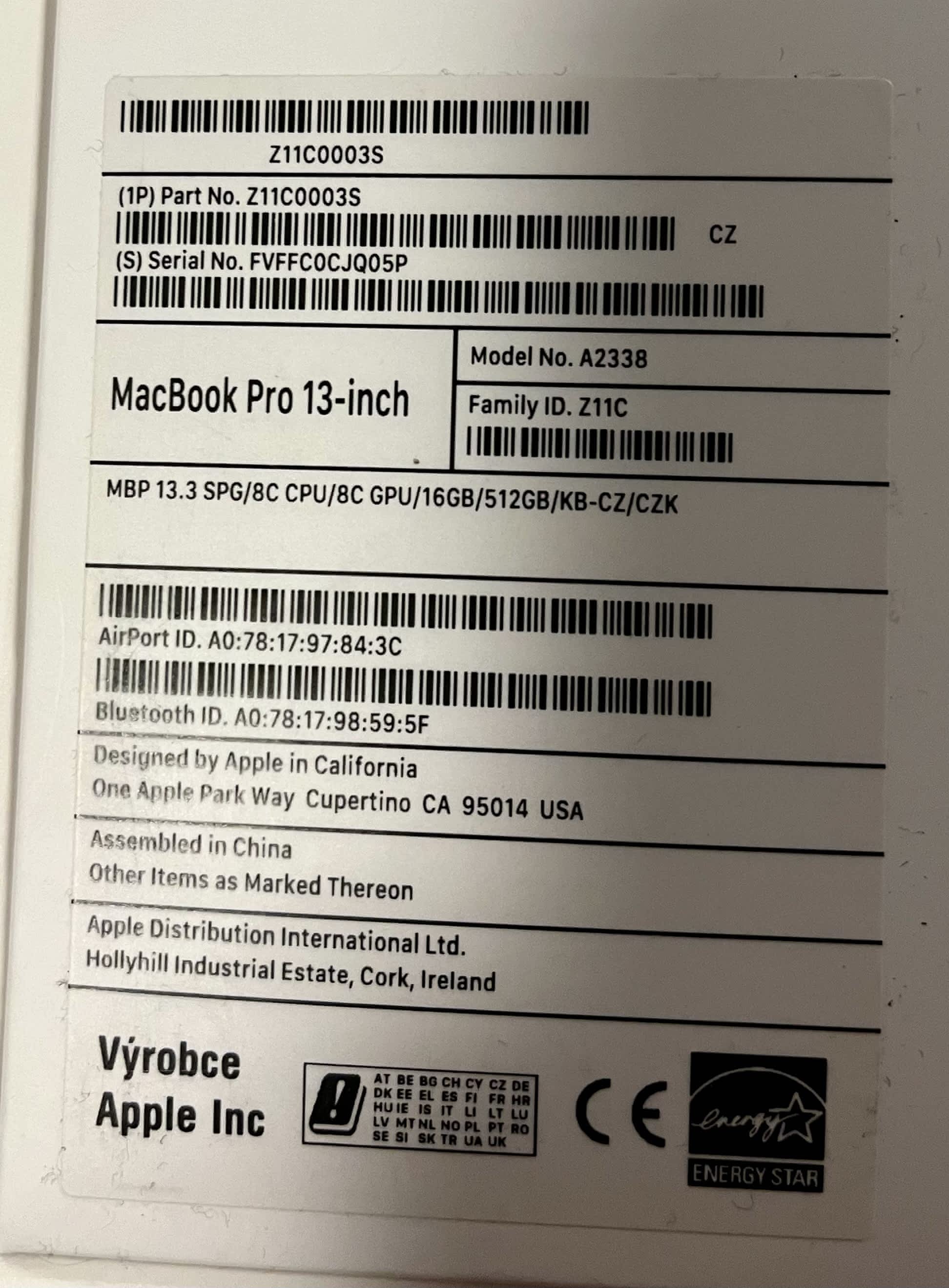 – SN: FVFFC0CJQ05P