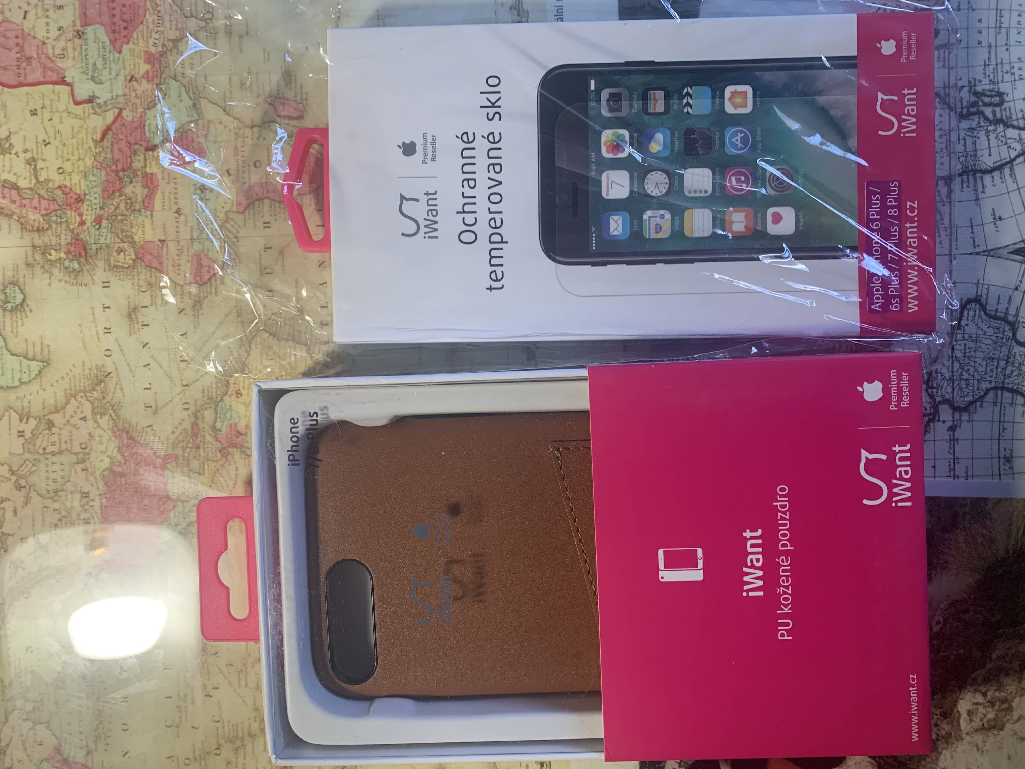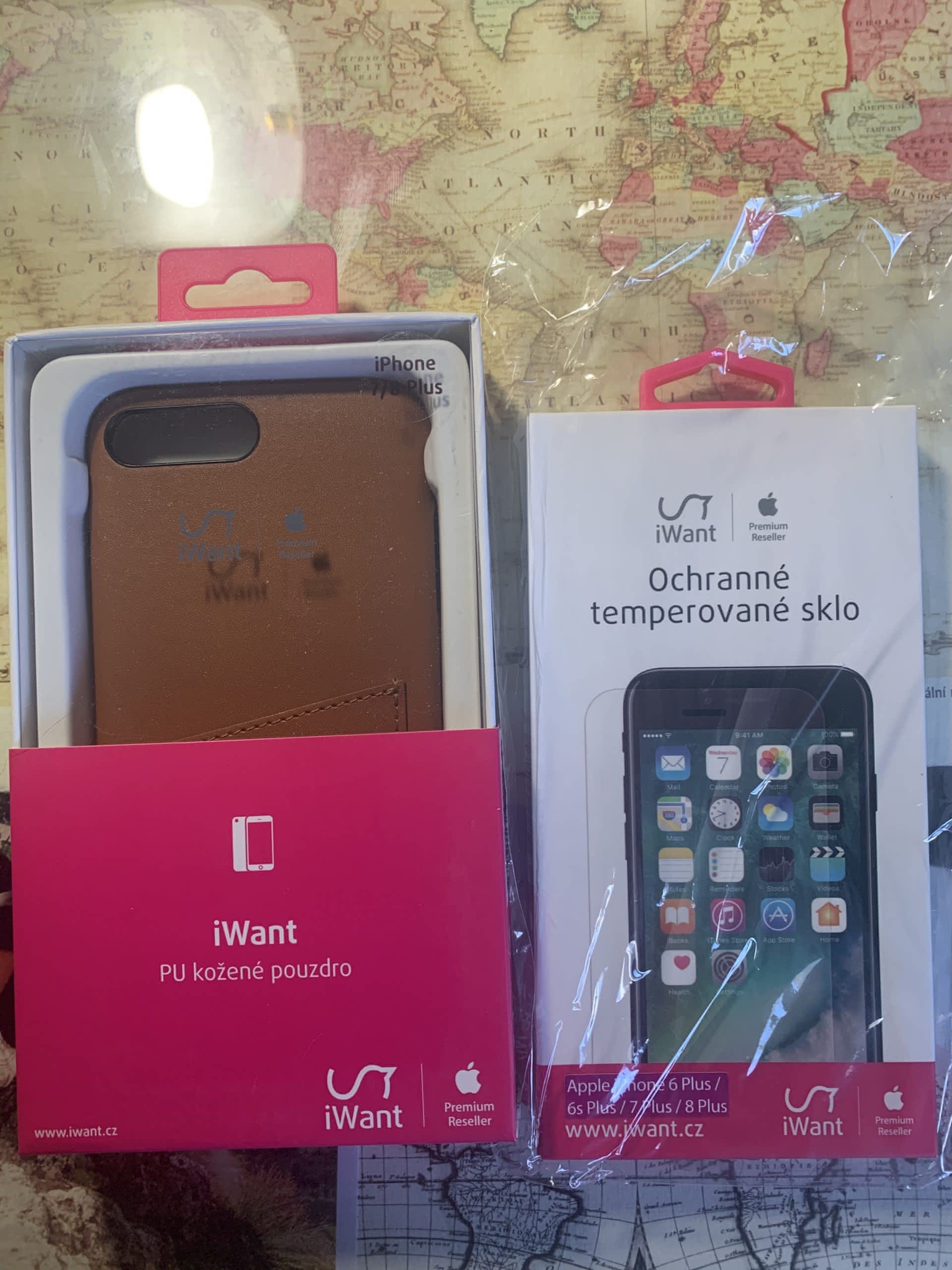 Nový Kožený obal hnědý a ochranné sklo Smarty pro IP 7 Plus/ 8 Plus.