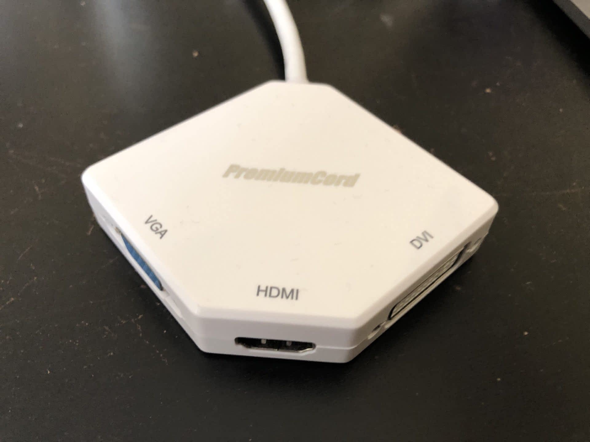 Adaptér pro připojení MacBook, MacBook Pro, nebo MacBook Air vybavených Mini DisplayPort výstupem s LCD nebo televizí, tři výstupní konektory (HDMI, DVI, VGA). Plně funkční, minimálně používané…