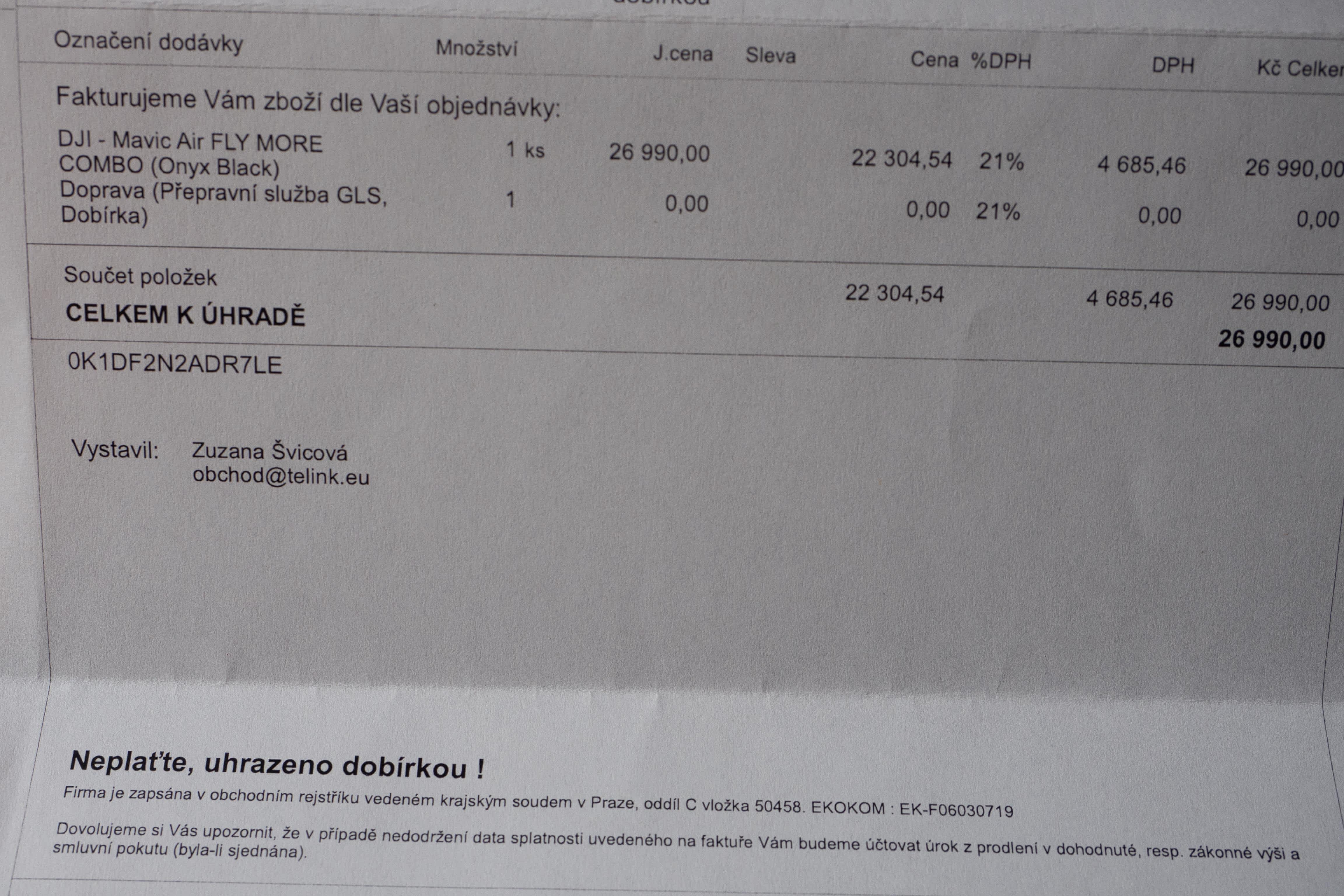 Prodám DJI Mavic Air FLY MORE COMBO v černé barvě. Kompletní balení s náhradními vrtulemi atd. Na ovladači a dronu ještě původní samolepky!! Stav nového zboží, pouze jedna baterie je mírně poškrábaná (vše na fotce níže!). Kupován za 26.990,- z telink.eu. V Olomouci a okolí, možnost osobního předání. Jinak zasílám na dobírku.