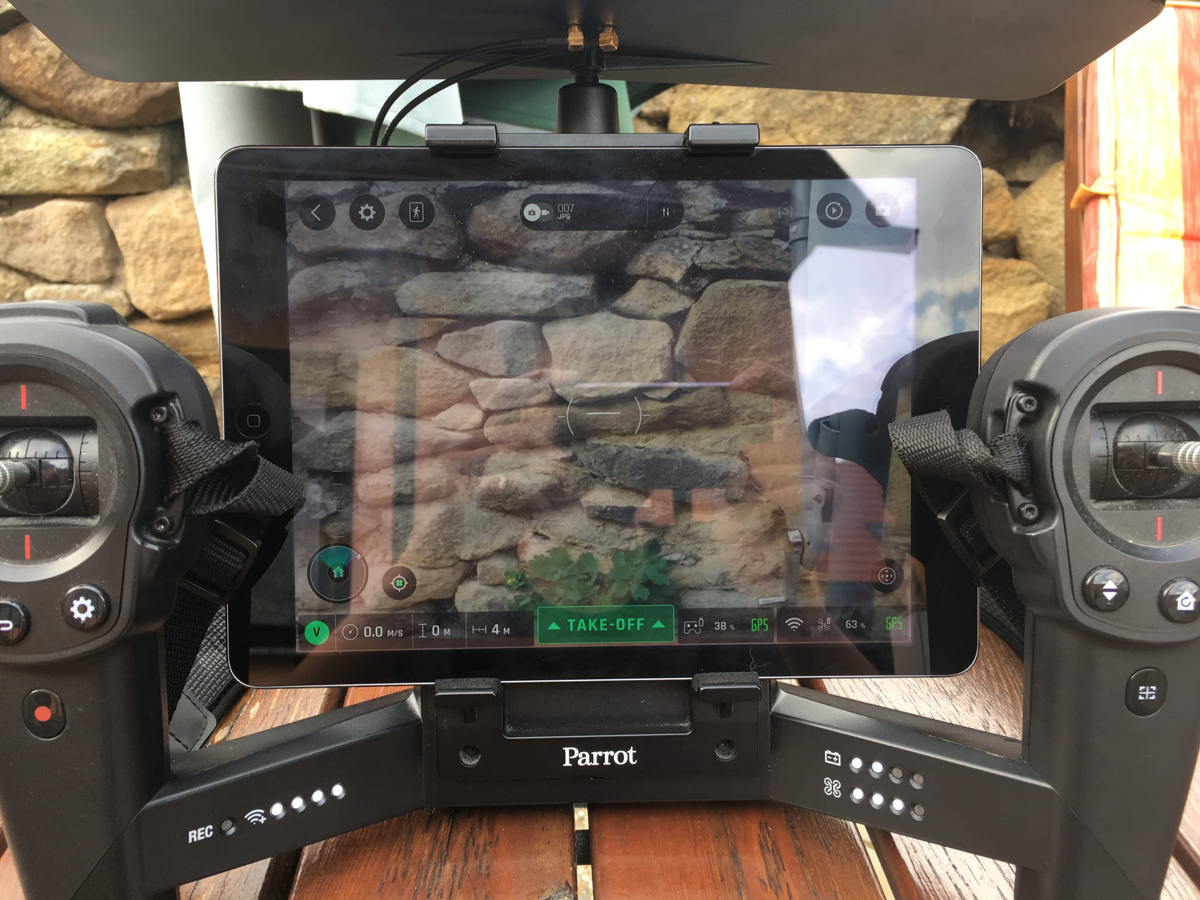 Do ovladače lze upnout tablet či mobil (aplikace je na iOS i Android). Vrtule lze snadno sundat pomocí univerzálního šroubu, mám sadu náhradních vrtulí. Dosah dronu je 2 km, má GPS, sledování pohyblivého cíle, stabilizovanou FullHD kameru, návrat do místa vzletu po strátě signálu, výdrž baterie je 25 minut.