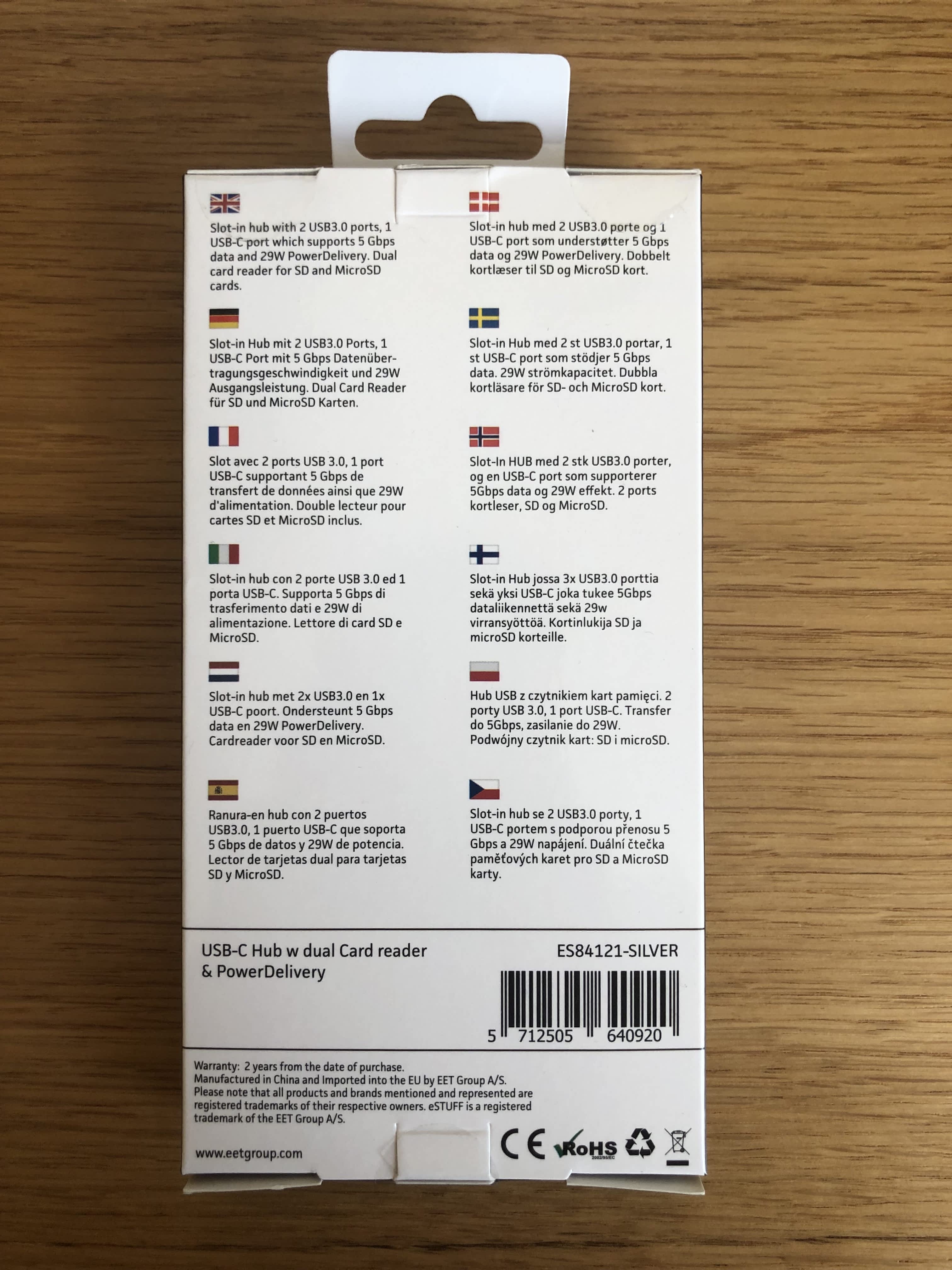 nabízím k prodeji ÚPLNĚ NOVÝ eSTUFF USB-C hub Silver, který disponuje dvěma porty usb 3.0, dvěma čtečkami karet a jedním usb c.