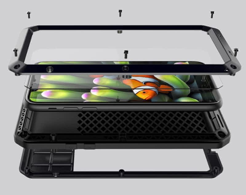 Voděodolný hliníkovo-silikonový kryt se skleněnou přední vrstvou pro Apple iPhone 6 a 6S černý
