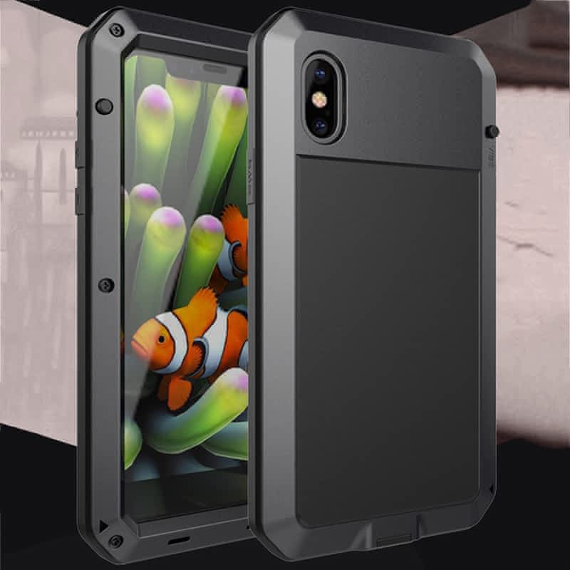 Voděodolný hliníkovo-silikonový kryt se skleněnou přední vrstvou pro Apple iPhone 7 Plus – černý.
