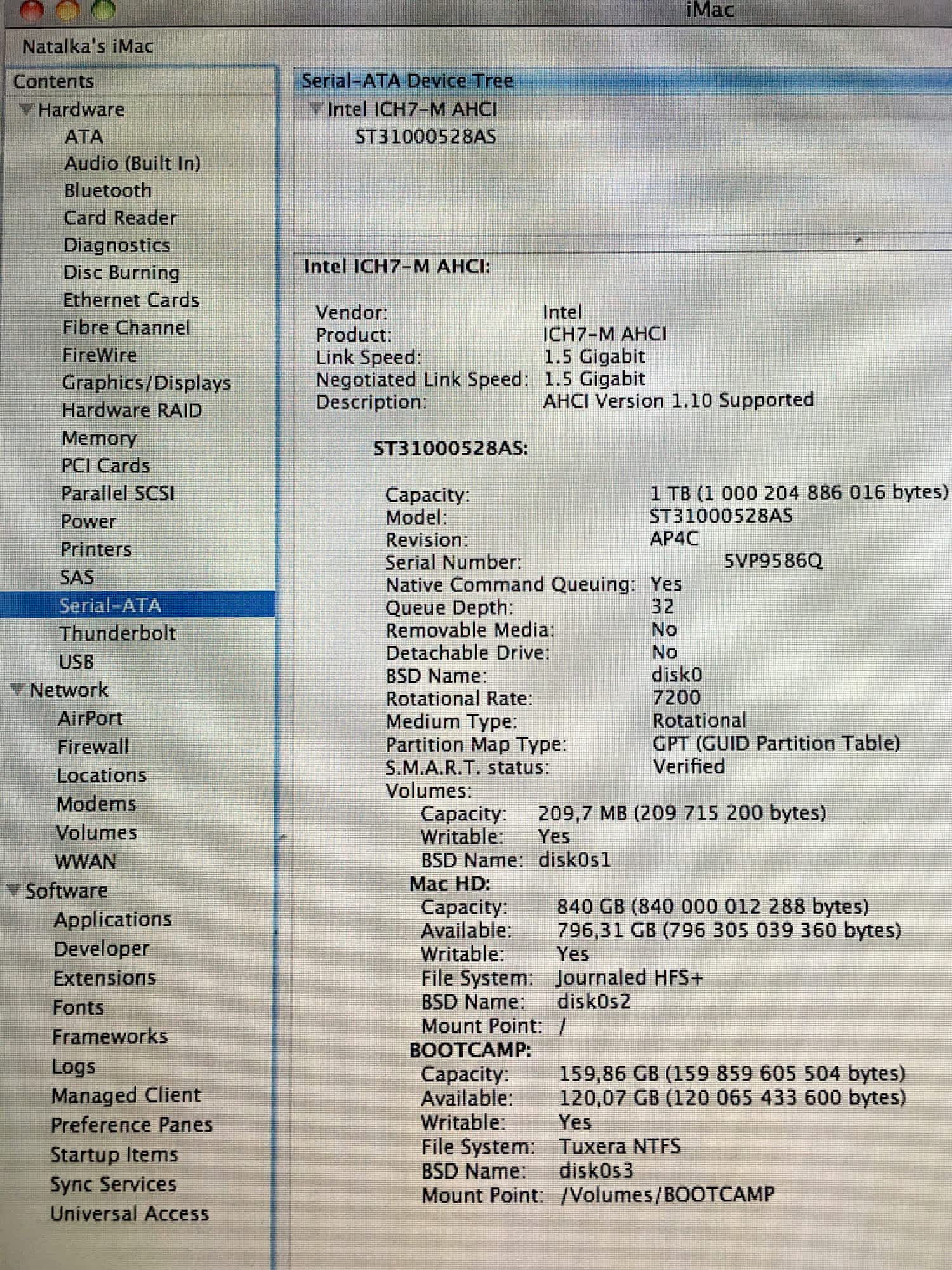 Hard disk 1 TB rozdělen v Bootcamp pro OSX a Windows 7.