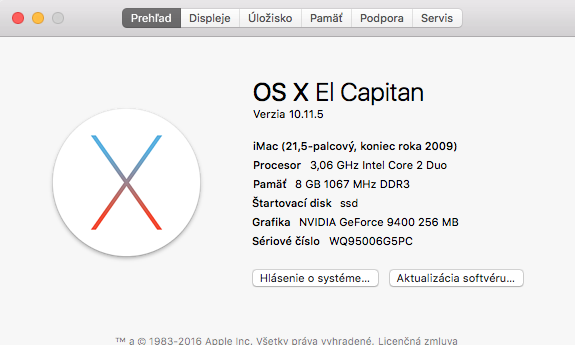 Predám iMac 21,5" 2009 Late, 8GB RAM, 256GB SSD (na SSD je ešte záruka z alzy),