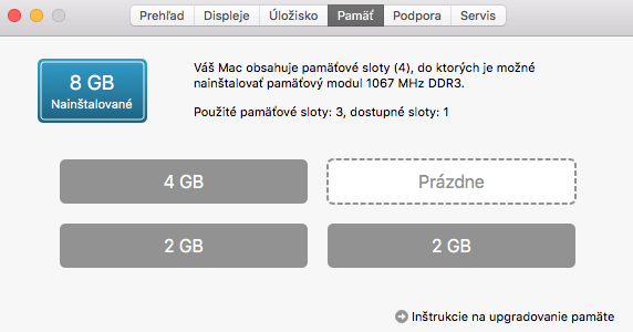 – 2x2gb RAM + 1x4gb RAM, jeden slot je voľný