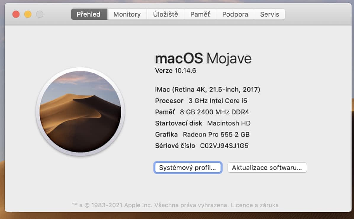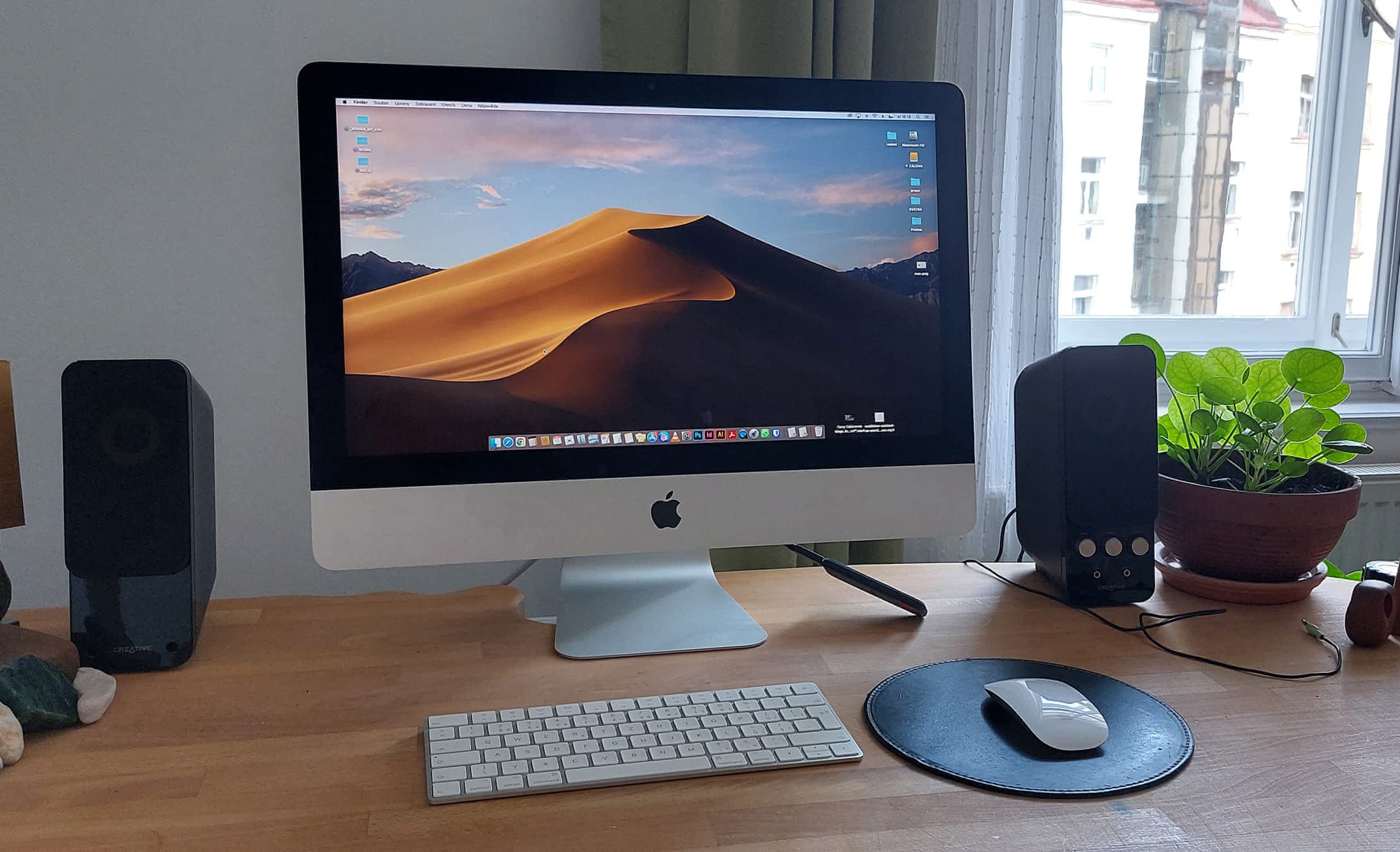 iMac 21,5”, Retina 4K, 2017, IntelCore i5 3 GHz, 8GB RAM, 1TB HDD, grafika Radeon Pro 555. Součástí je originální klávesnice, myš i krabice.