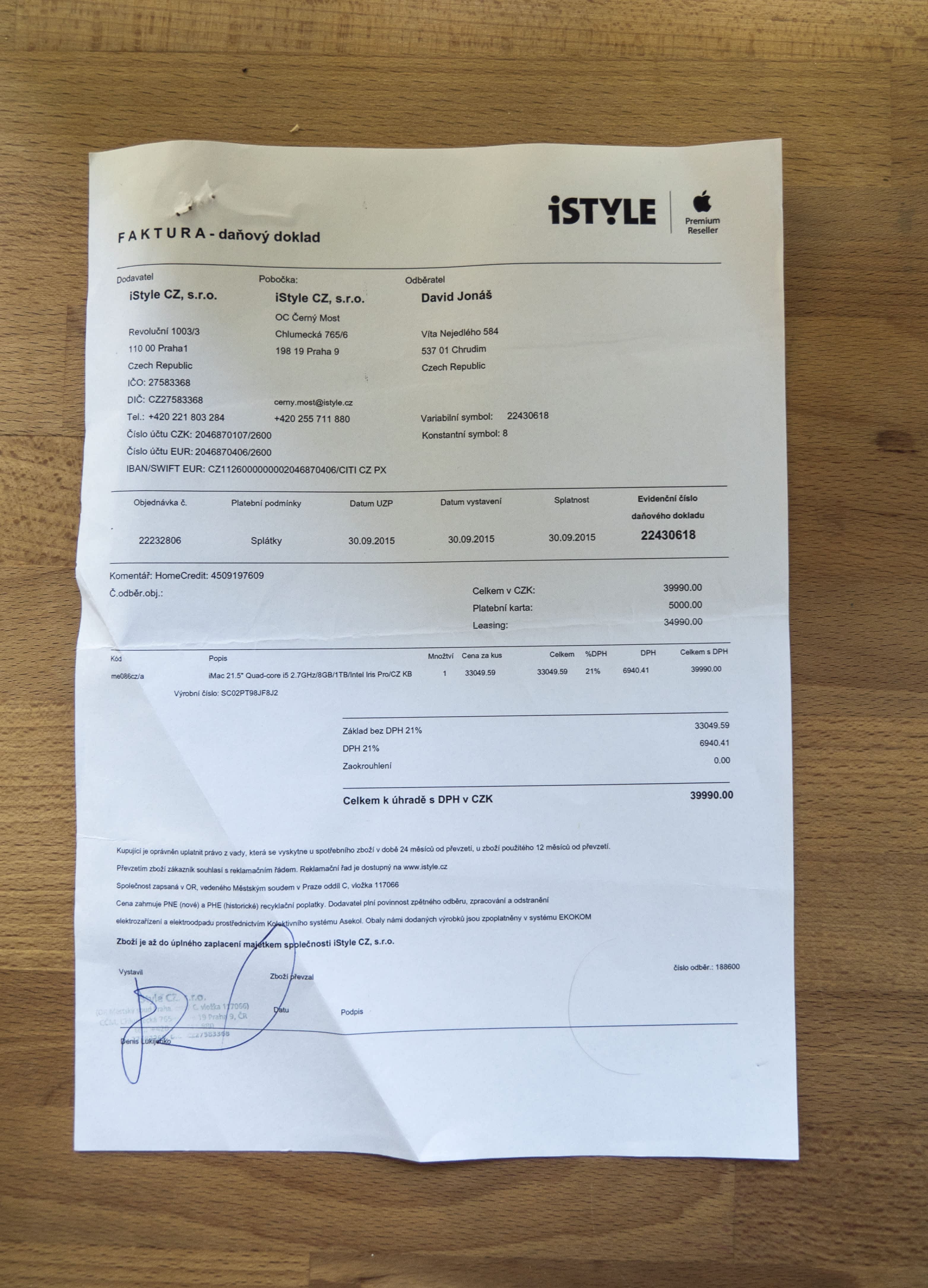 Upřednostňuji především osobní předání (Praha 2 – Vinohrady). Vše před zabalením do originální krabice ukáži a případné nováčky z přechodu Windows základně mohu i zaškolit.