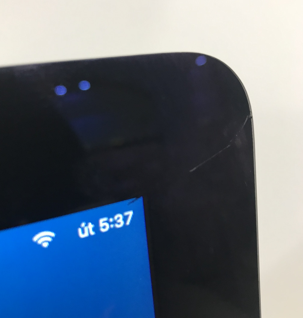Menší prasklina skla na černém rámu LCD, nemá žádný vliv na funkčnost