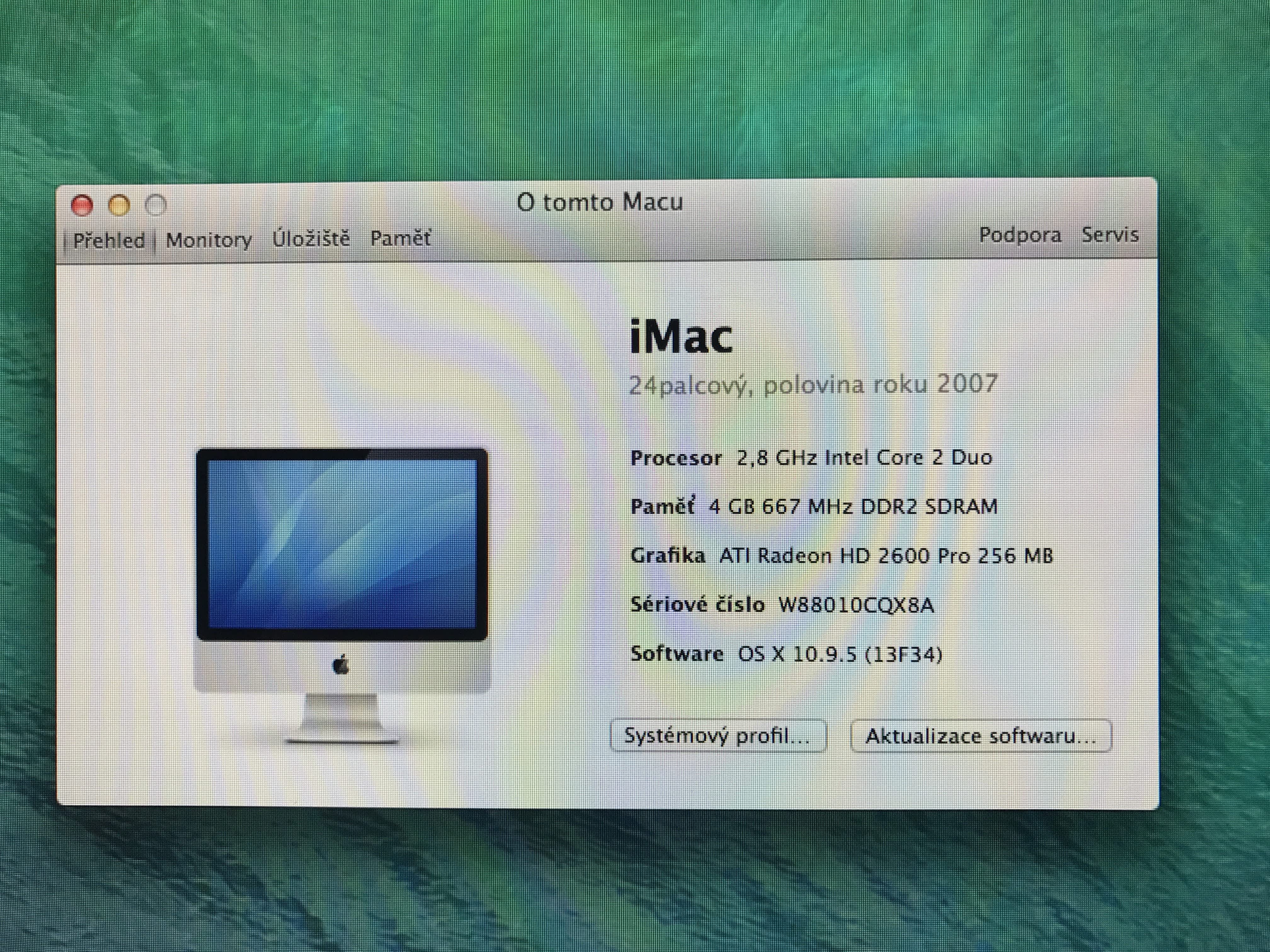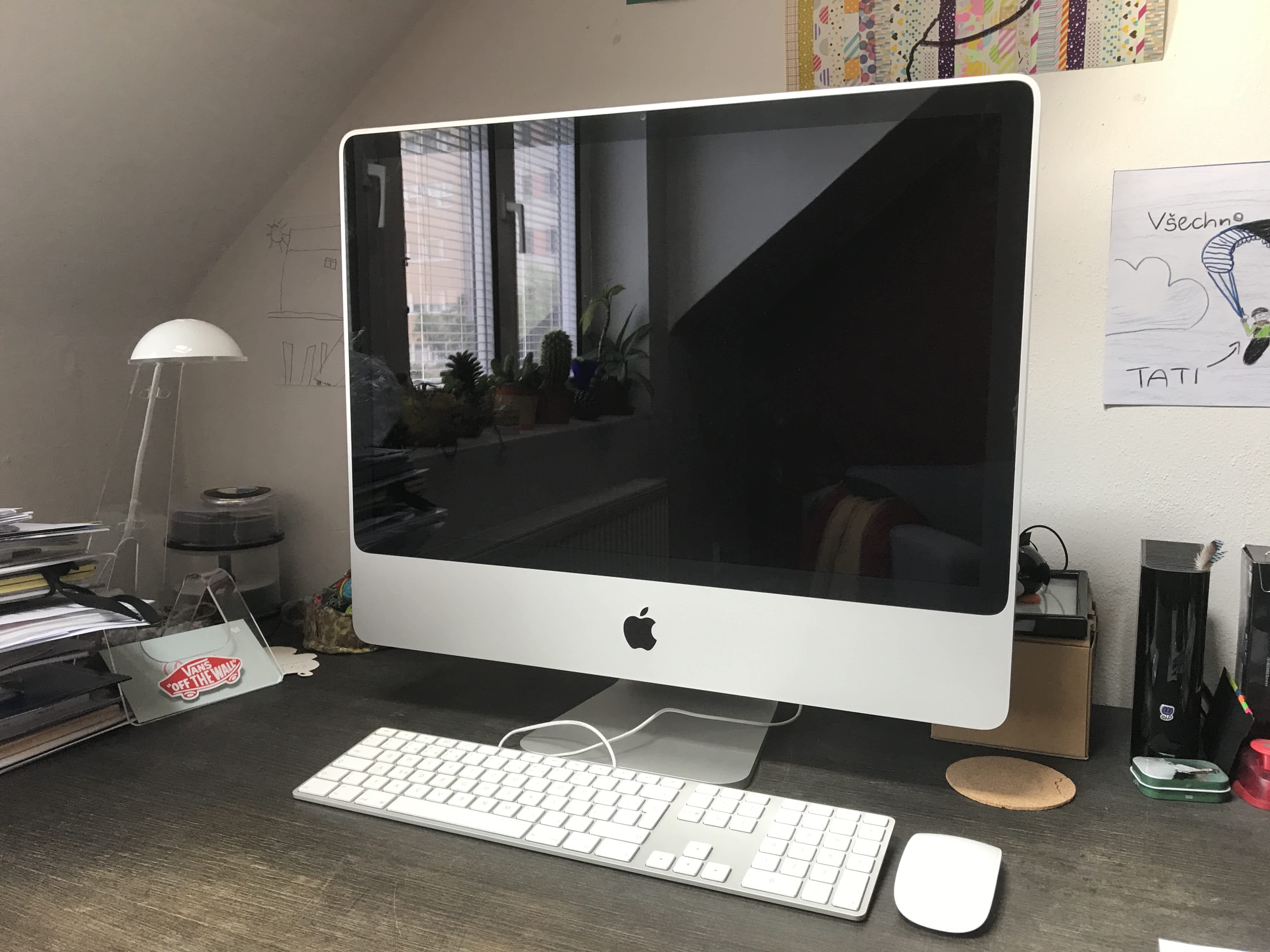 iMac 24, mid 2007, 2,8 GHz Intel Core 2 Duo, 4GB RAM, nový SSD disk 480GB, klávesnice, Magic Mouse. Se SSD diskem je počítač velmi rychlý. Bezproblémový chod.