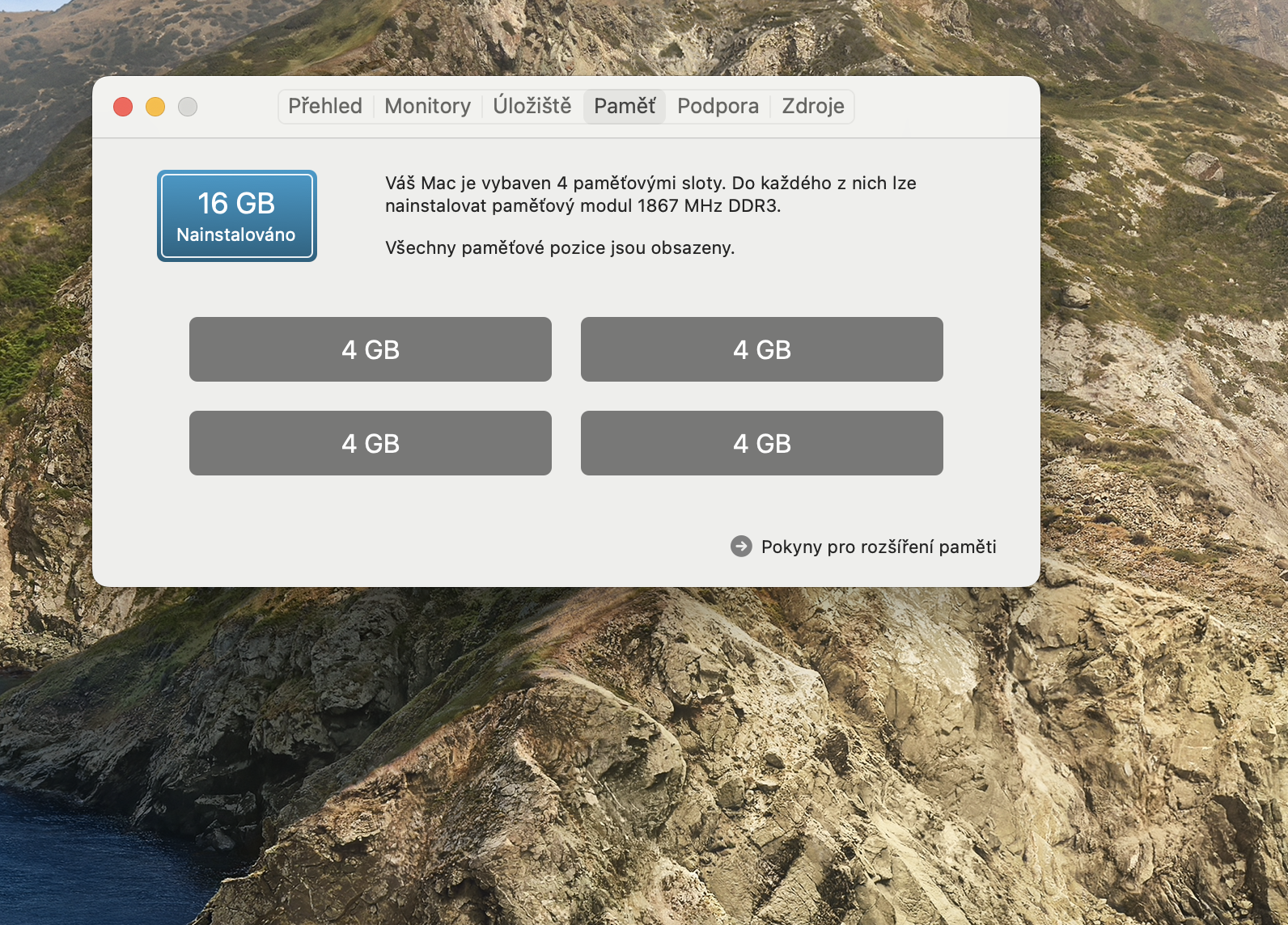 Paměť – 16 GB 1867 MHz DDR3 (4x 4 GB)