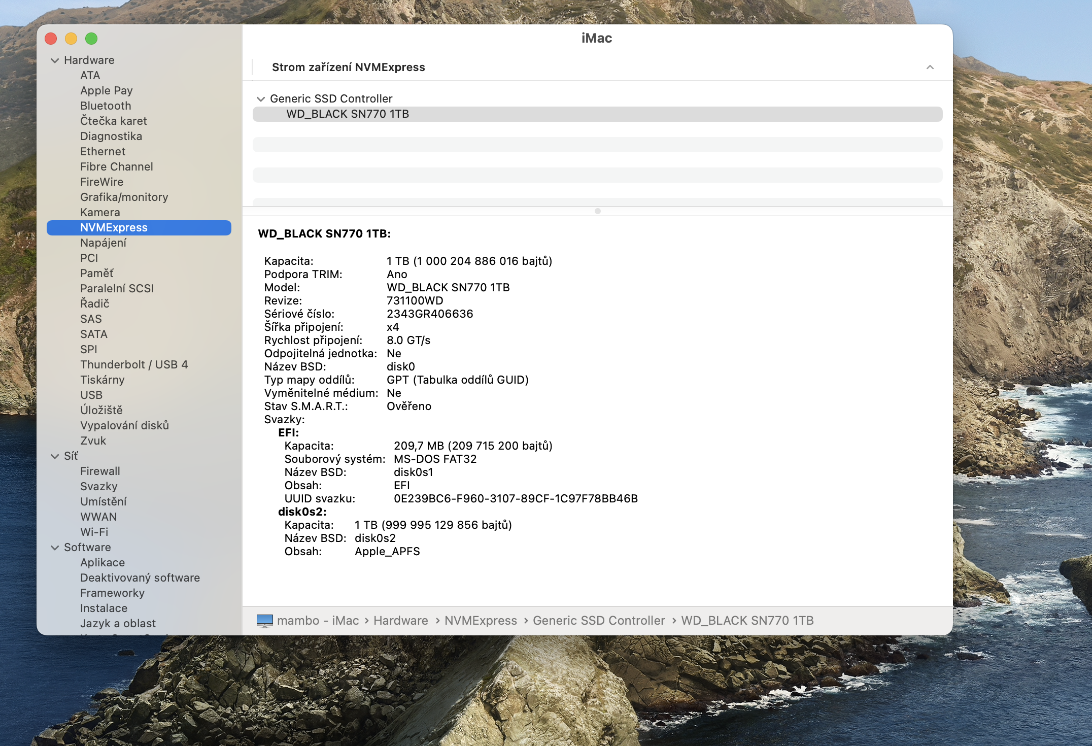 iMac upgradován o úplně nový ultra rychlý 1TB NVMe Flash SSD WD Black SN770, legendární a super spolehlivý Flash SSD disk díky kterému se celý iMac úžasně zrychlil, start Macu během 12 sekund.