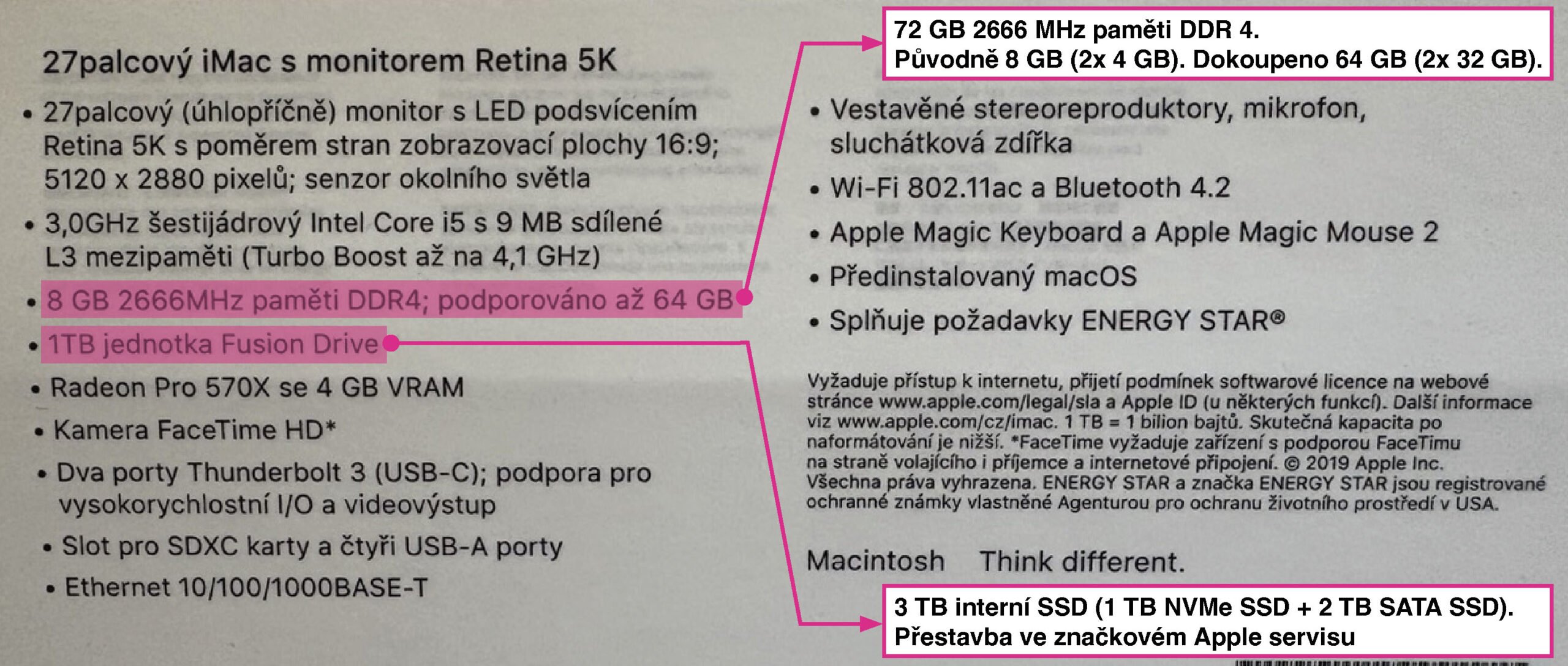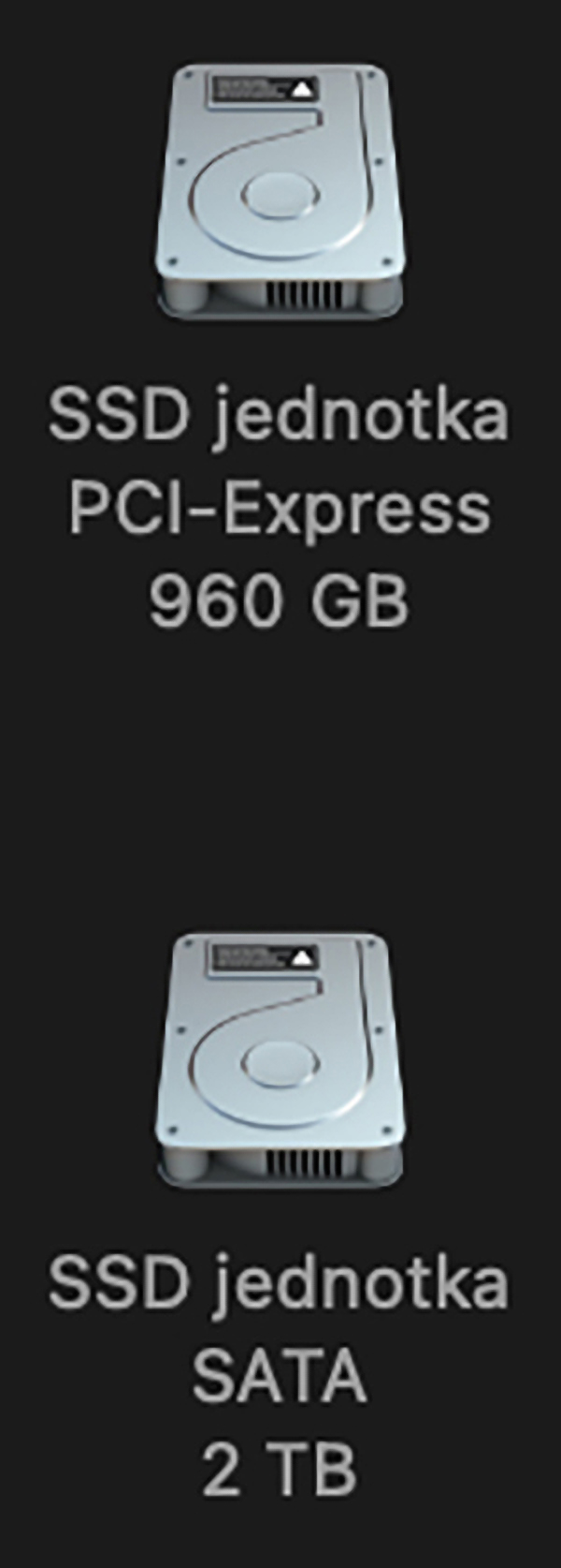 – 3TB interní SSD (1TB NVMe SSD + 2TB SATA SSD). Přestavba ve zn. Apple servisu.