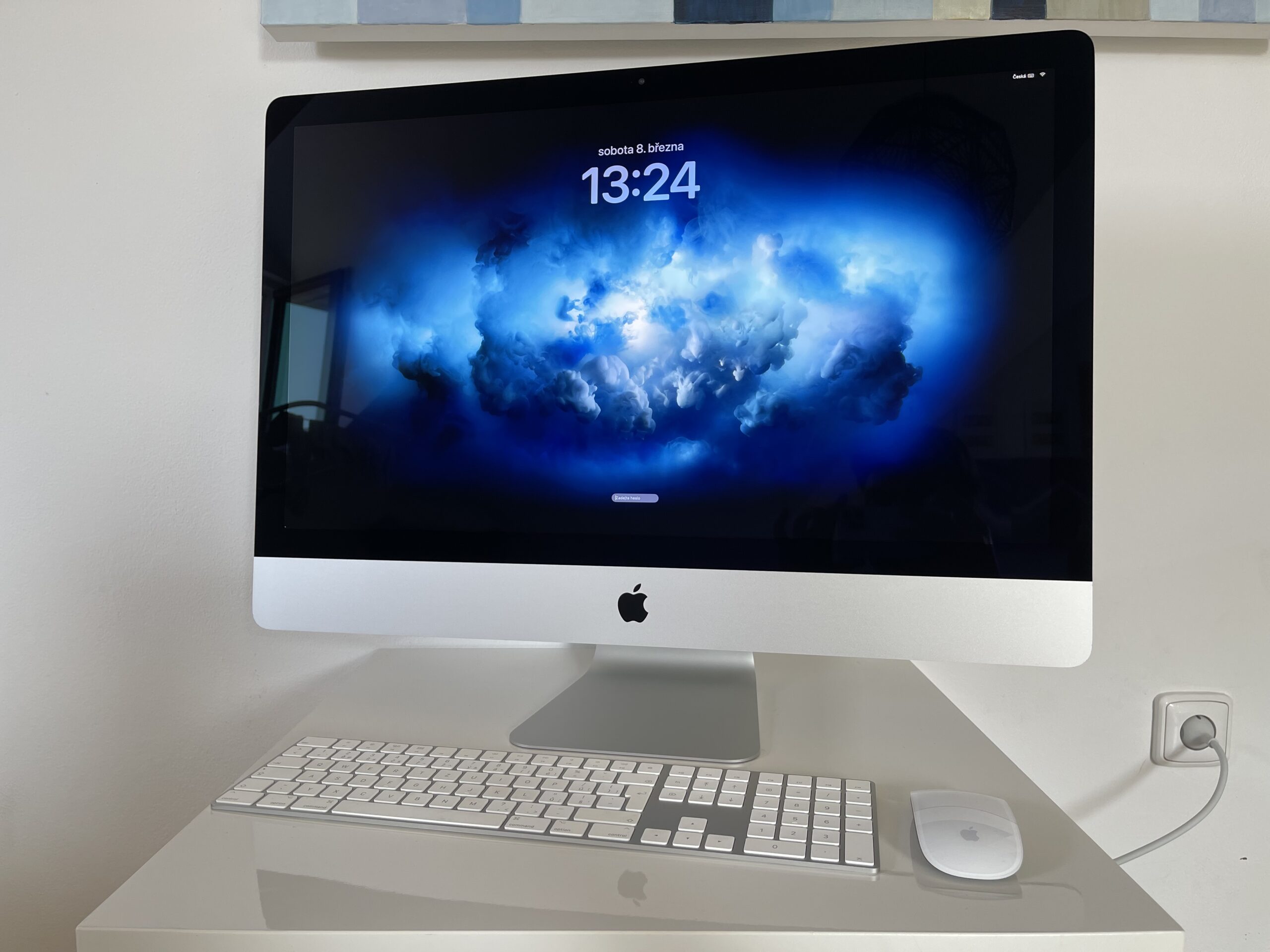 Kompletní balení – Apple Magic Mouse 2, Apple Magic Keyboard CZ numerická, originální kabel ke klávesnici, originální napájecí kabel iMacu