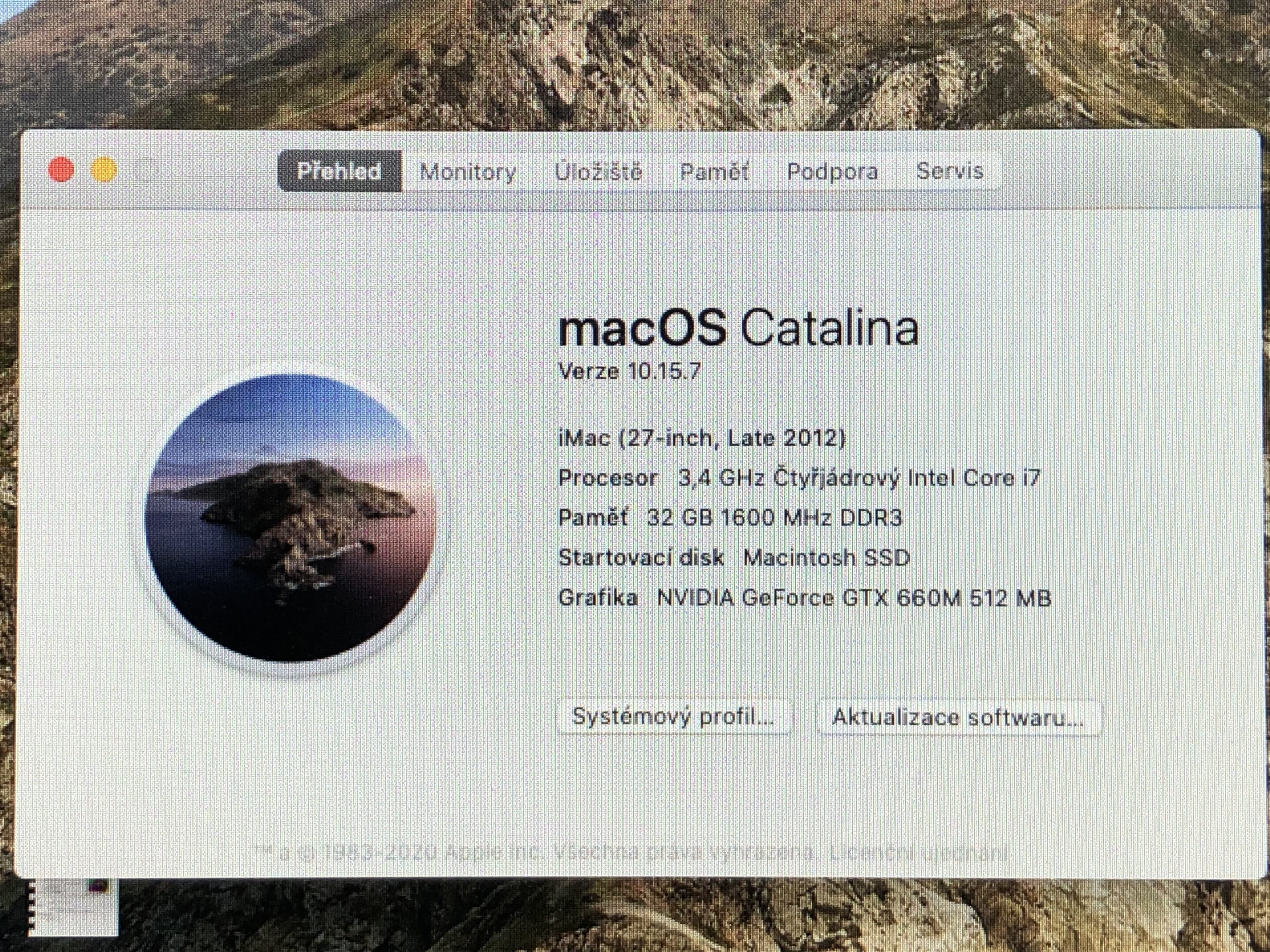 27" iMac late 2012, slim, vypadá stejně jako současný. Rozlišení 2560 x 1440. macOS Catalina. Zapnutí pod 2 minuty. Koupený v základní konfiguraci.