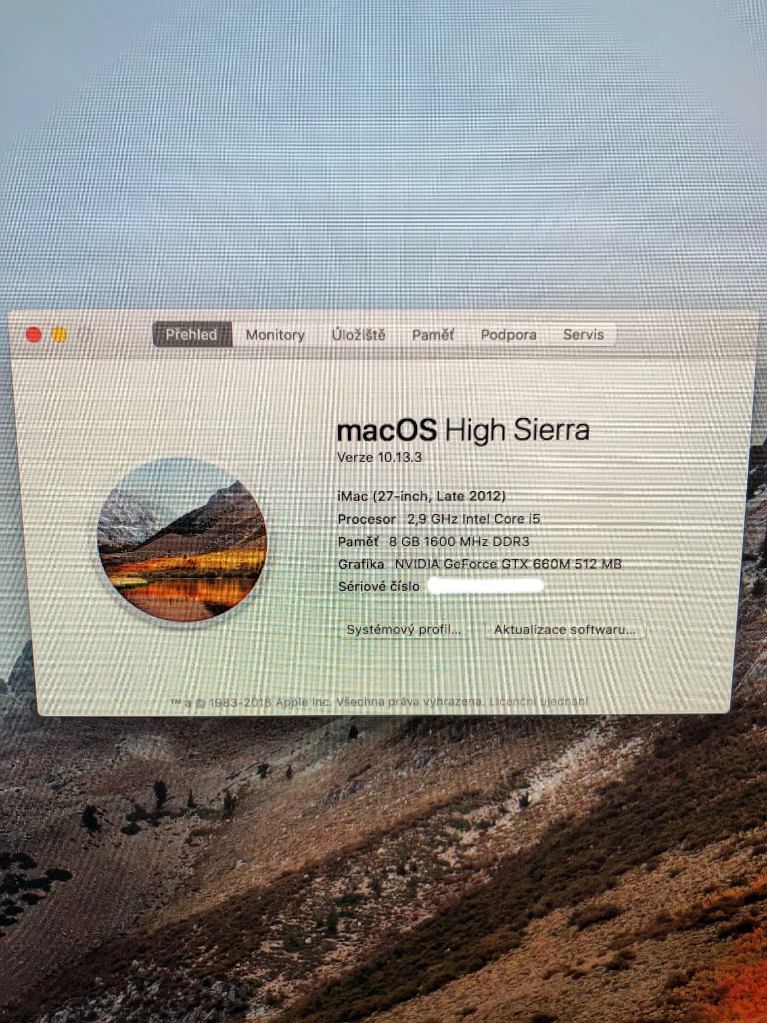 Prodám iMac 27 Late 2012, 2,9 Intel Core i5, 8GB, NVIDIA GTX 660 512 MB, nový SSD disk 128 GB