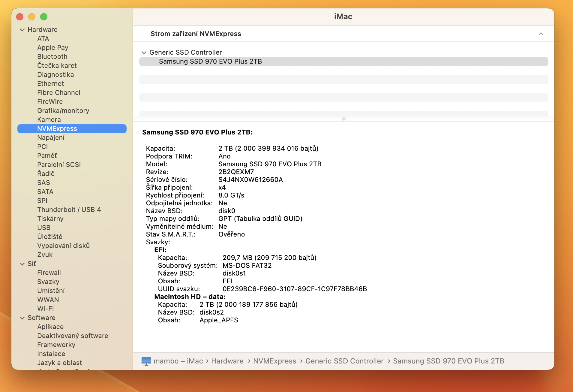 iMac upgradován o úplně nový ultra rychlý 2TB NVMe Flash SSD Samsung EVO 870 Plus, legendární a super spolehlivý Flash SSD disk díky kterému se celý iMac úžasně zrychlil, start Macu během 12 sekund.