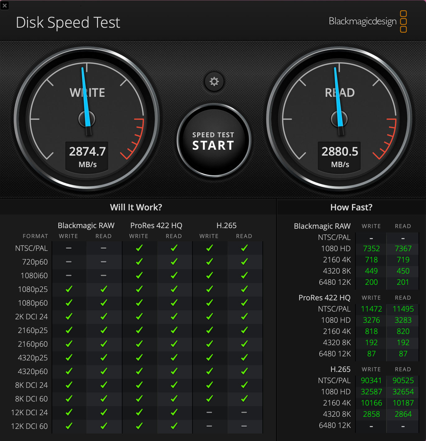 Přenosové rychlosti flash disku viz. screenshot z BlackMagic Disk Testu. (Nezaměňovat za cca 5x pomalejší klasické SSD disky se SATA rozhraním).