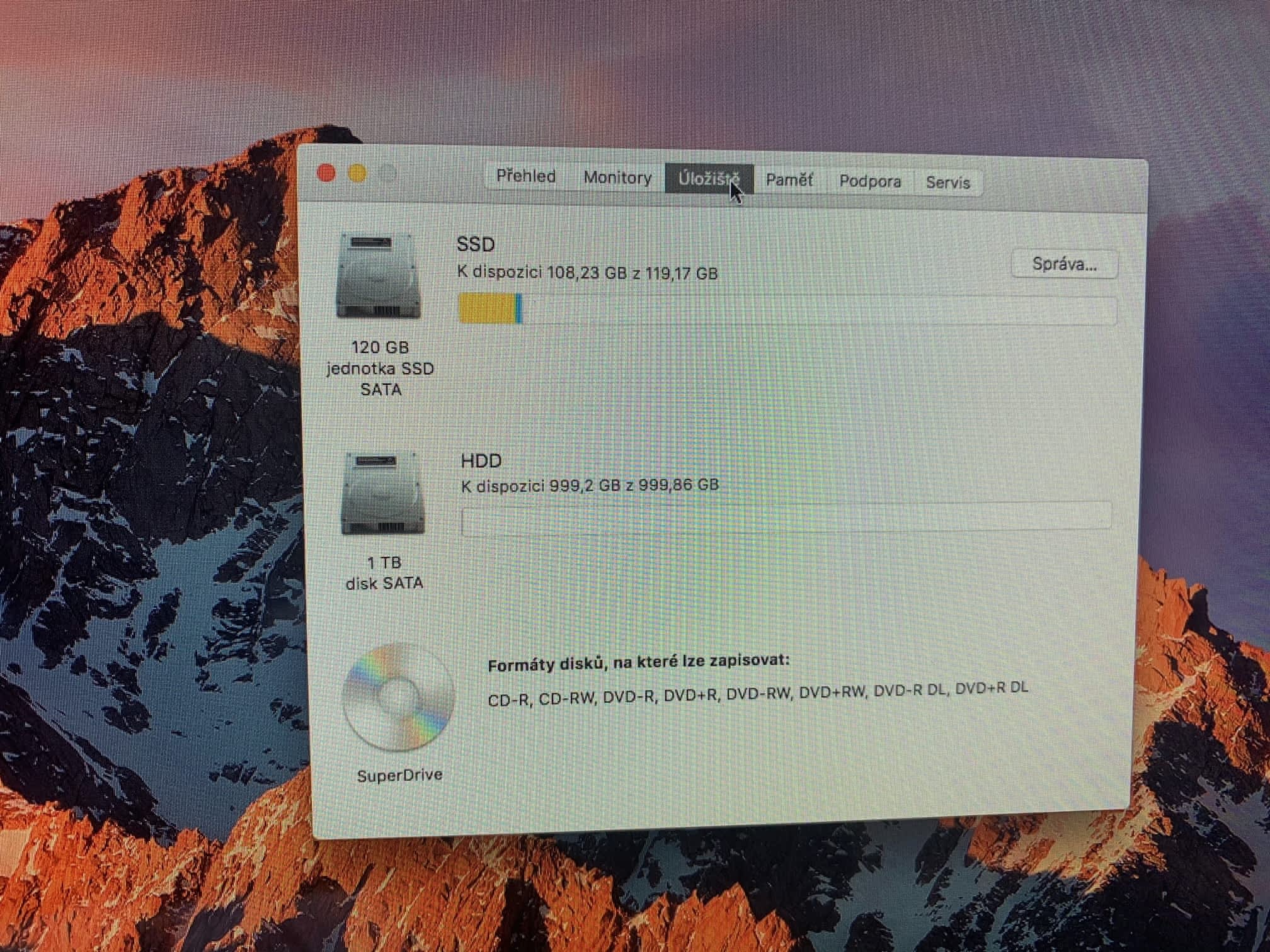 V iMacu je jak 1TB HDD, tak SSD 128 GB. V Lednu 2021 dokoupeno teplotní čidlo, takže iMac jede potichu a není třeba využívat softwarové řešení otáček ventilátoru.