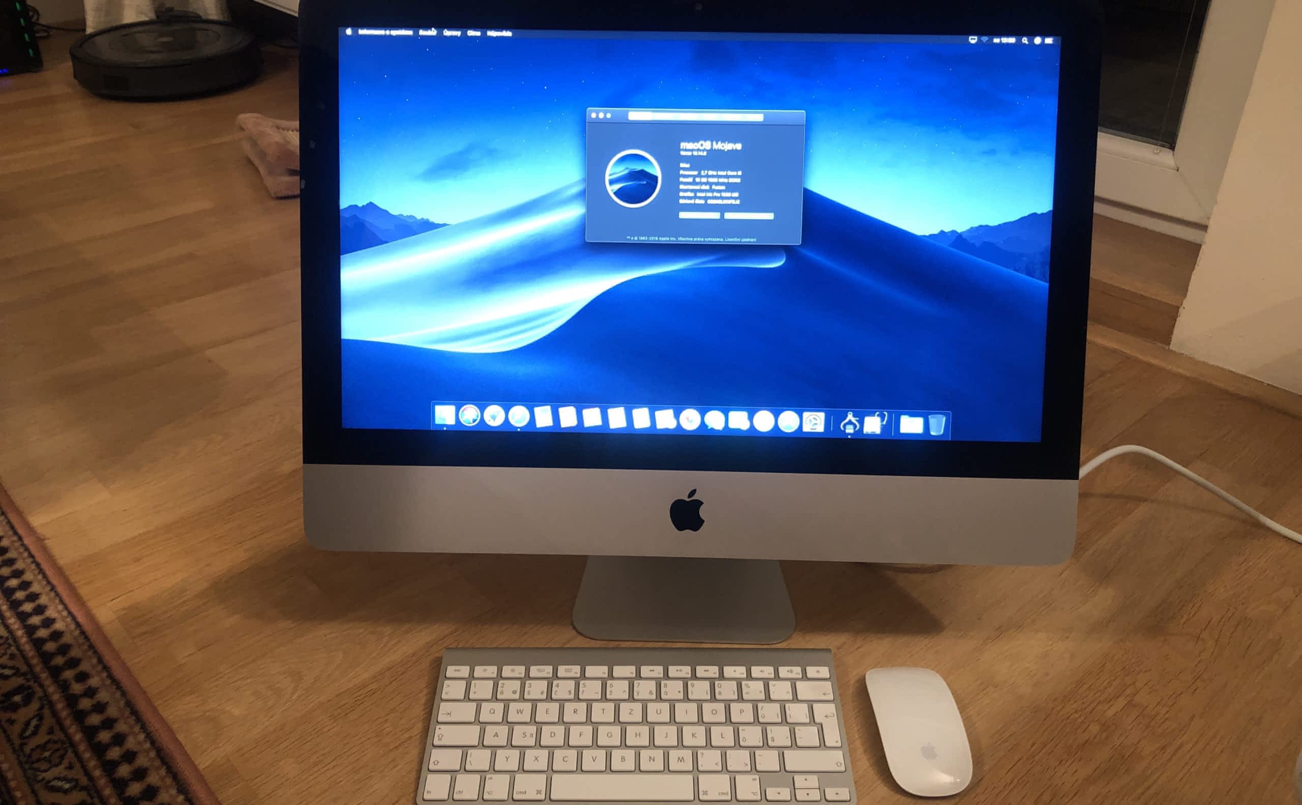 Prodám Apple iMac 21,5 palce, Late 2013, macOS Mojave 10.14.6, včetně bezdrátové klávesnice a myši magic mouse a originální nepoškozené krabice. Minimálně používán, cena za upgrade-