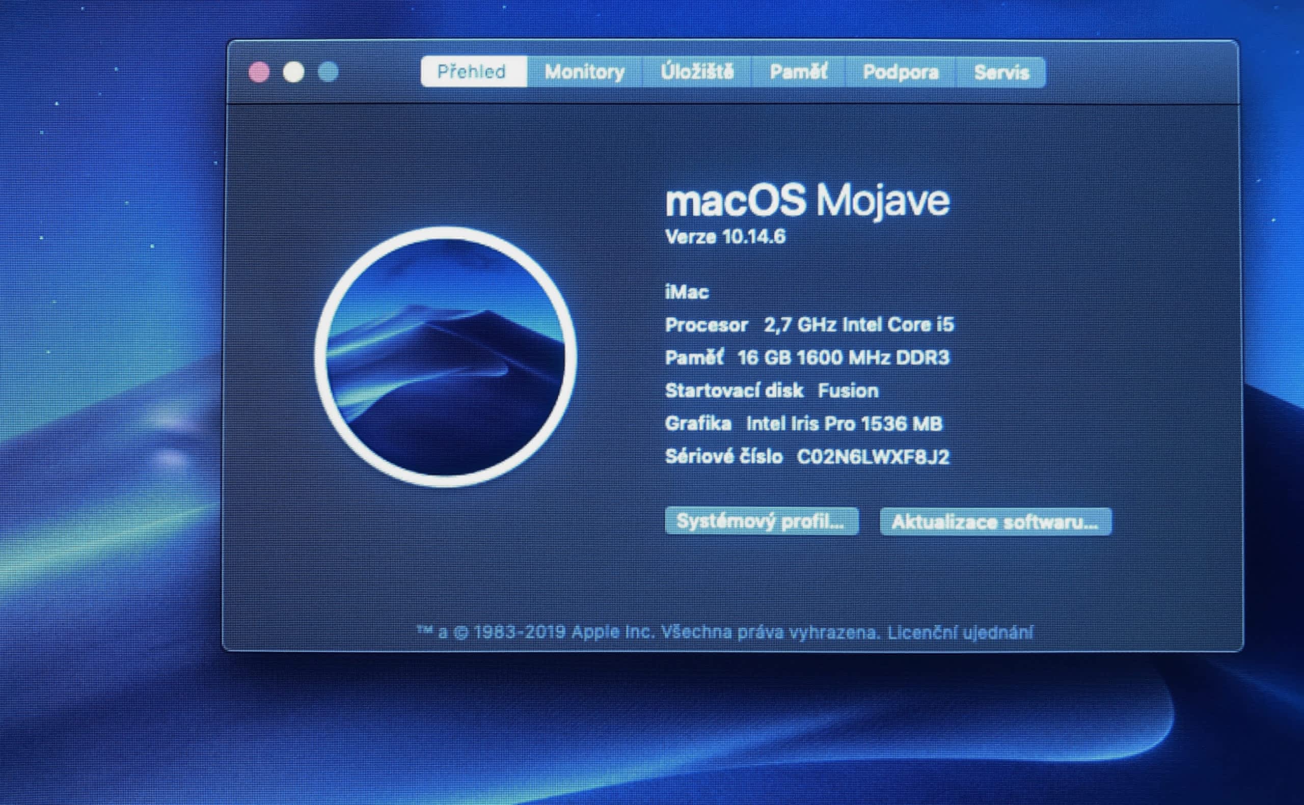 Původní majitel, RAM rozšířena na 16GB, SSD 480 GB a 2TB Seagate (Fusion drive 2,48)