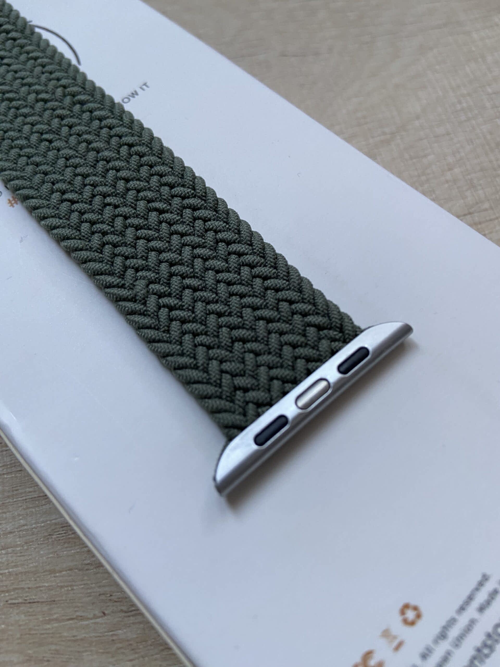 Prodám nový (nikdy nenošený) řemínek na AW 44/45mm. Jedná se o pletený Braided Solo Loop od firmy Innocent v tmavě zelené/ olivové barvě. Řemínek je ve vel M. na zápěstí od 18cm výše. Záruka 24m – Faktura z iStores. V Ostravě možno i vyzkoušet.