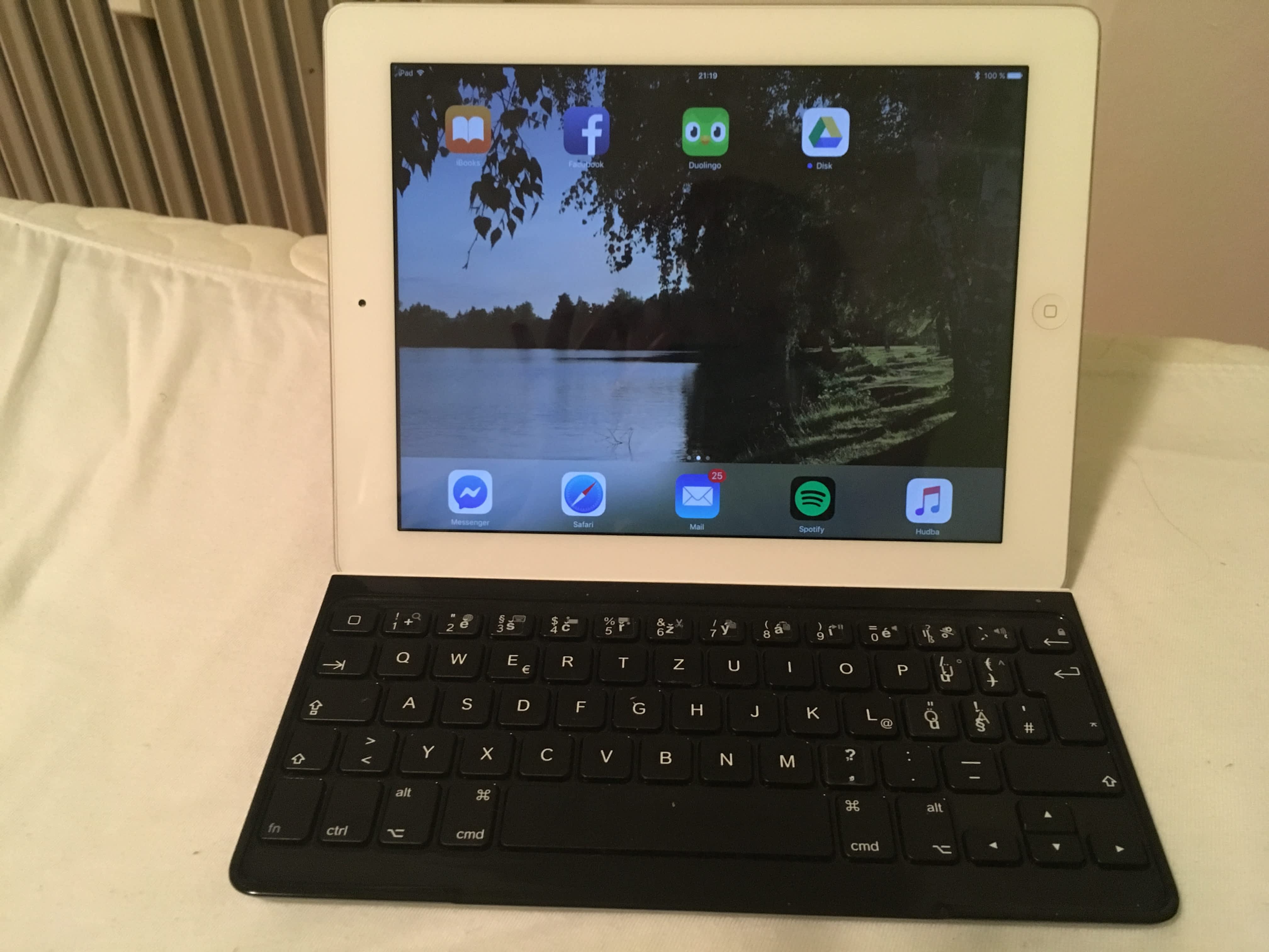 Prodám používaný iPad 4. generace 32Gb Wi-Fi. Stříbrné provedení. Běžné oděrky na zadní straně. Nemá nijak poškozený display. Prodám s neoriginální nabíječkou a kabelem. V ceně Bluetooth klávesnice Logitech (nutno jednou za 2-3 měsíce dobít) a originál Apple cover. iPad vydrží při využívání jako Domácnost na jedno nabití až 3 týdny. Při běžném používání (internet, appky, word) 5-7 hodin. Prodávám z důvodu zakoupení nového modelu.