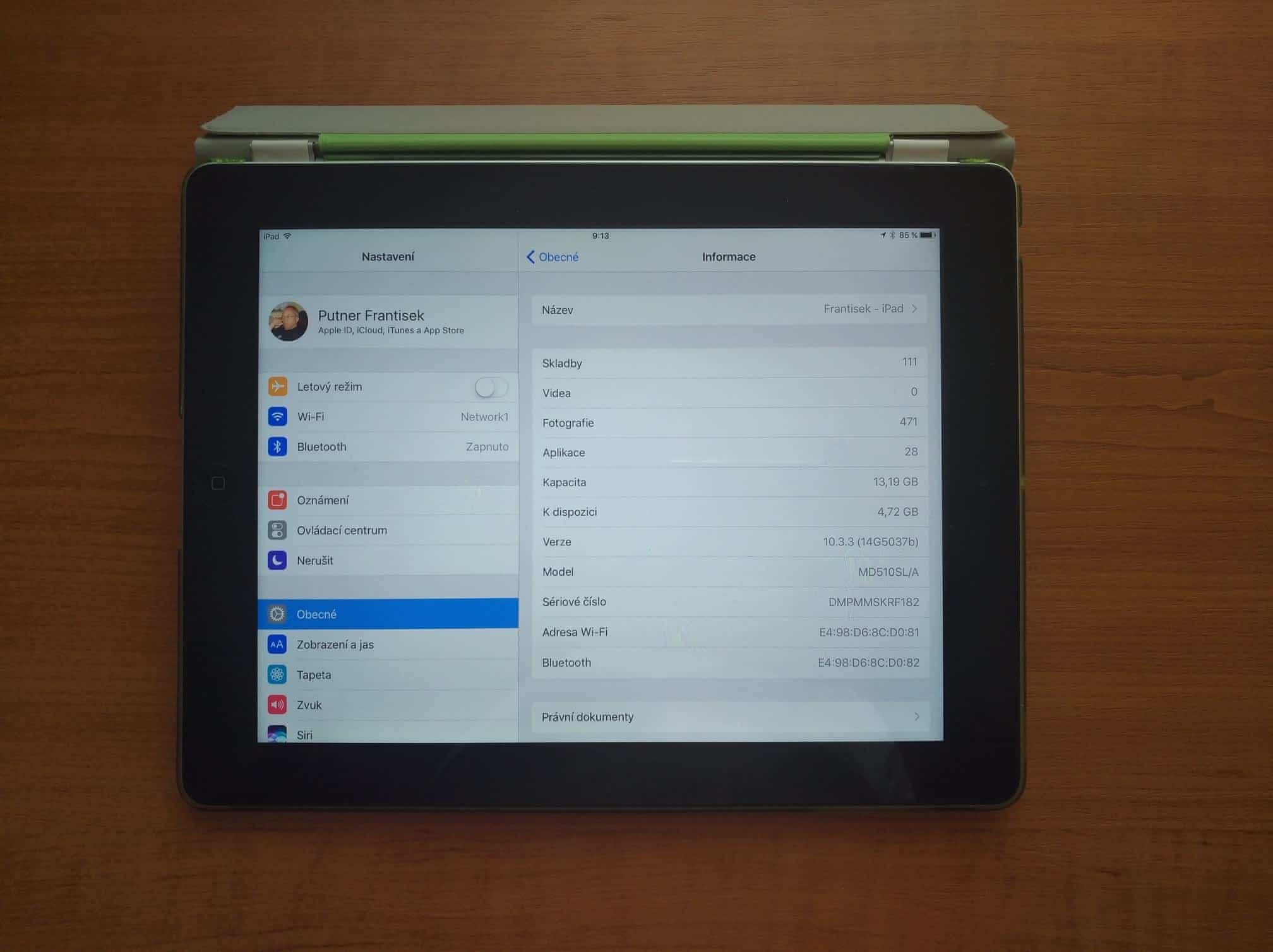 Prodám Apple iPad 4.generace iOS 10.3.3 s 16GB WiFi. Na displeji a obalu není žádné viditelné poškození. iPad má průhledný zelený smartcover. Dodám s originální krabici a neoriginální silnější nabíječkou.Málo používaný, baterie má stále 100% výdrže. Prodej osobně za cenu 4900,- Kč.
