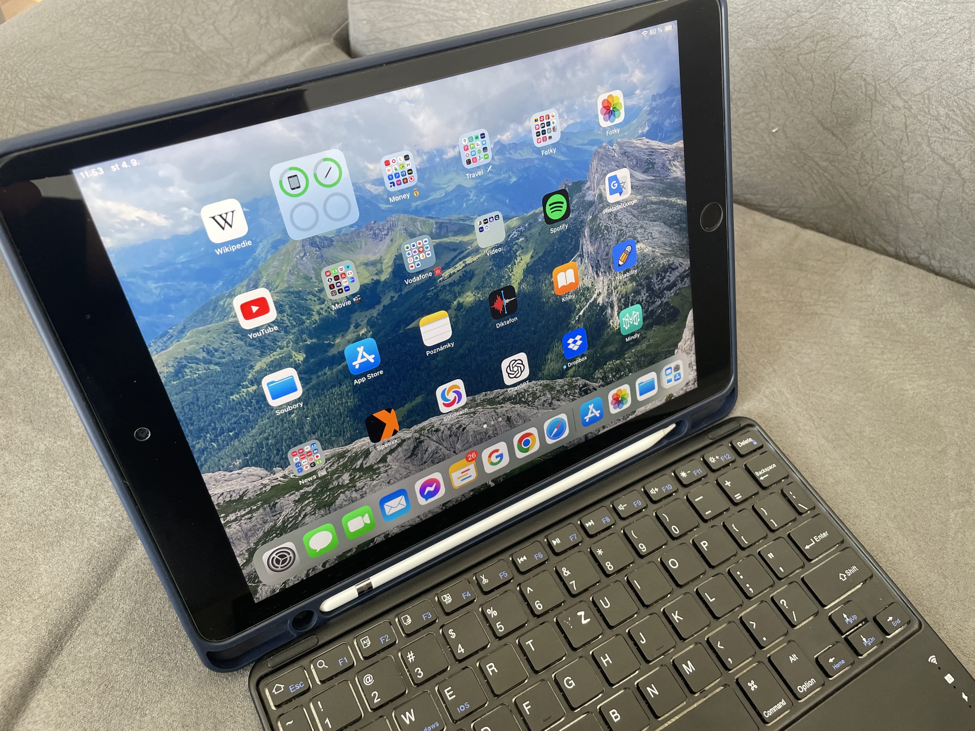 Součástí prodeje je i Apple Pencil (1. generace). Dále Bluetooth klávesnice s pouzdrem (funguje skvěle, nabíjí se přes USB).