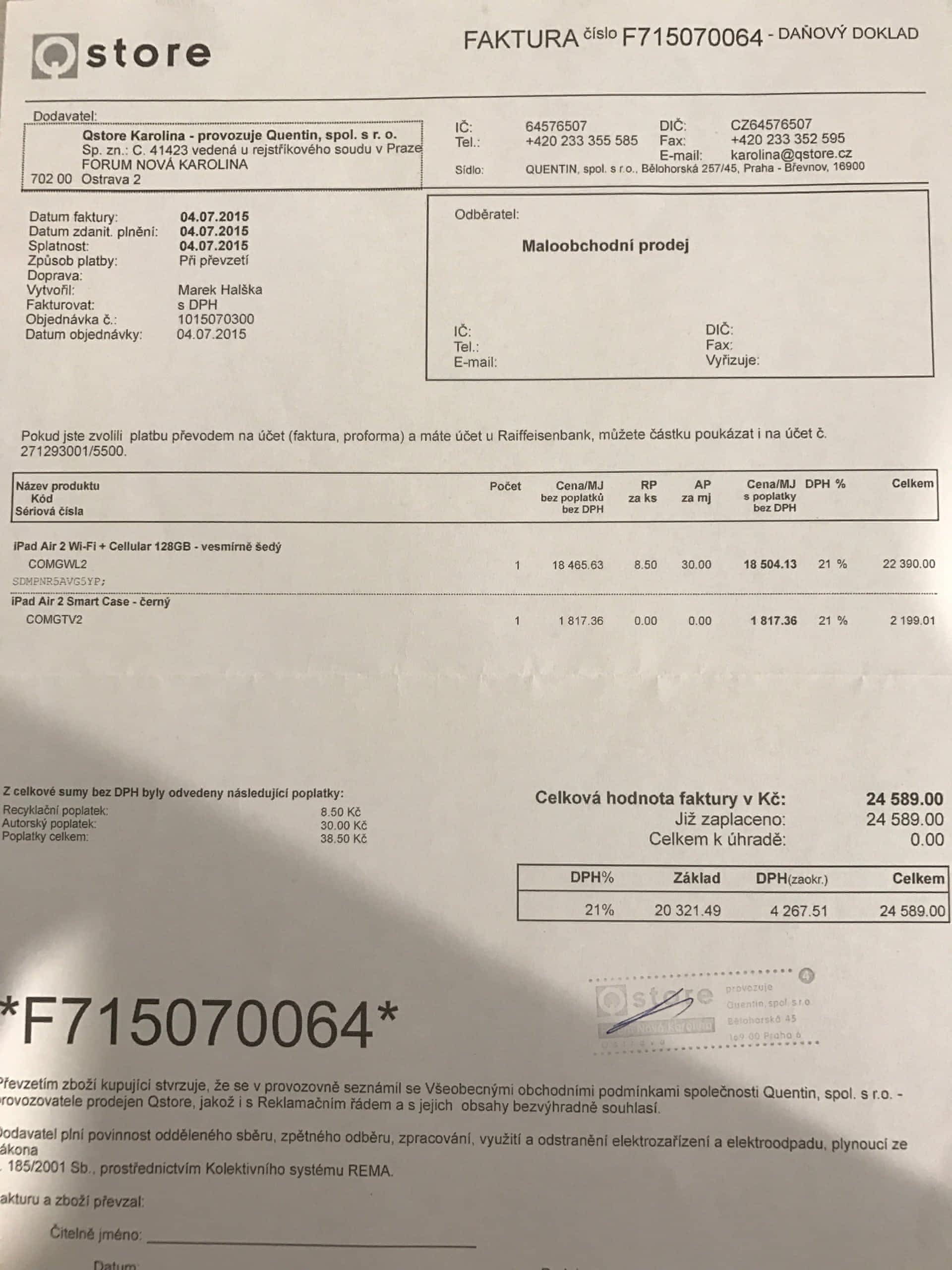 Tablet dodám s restartován s odhlášeným iCloud.