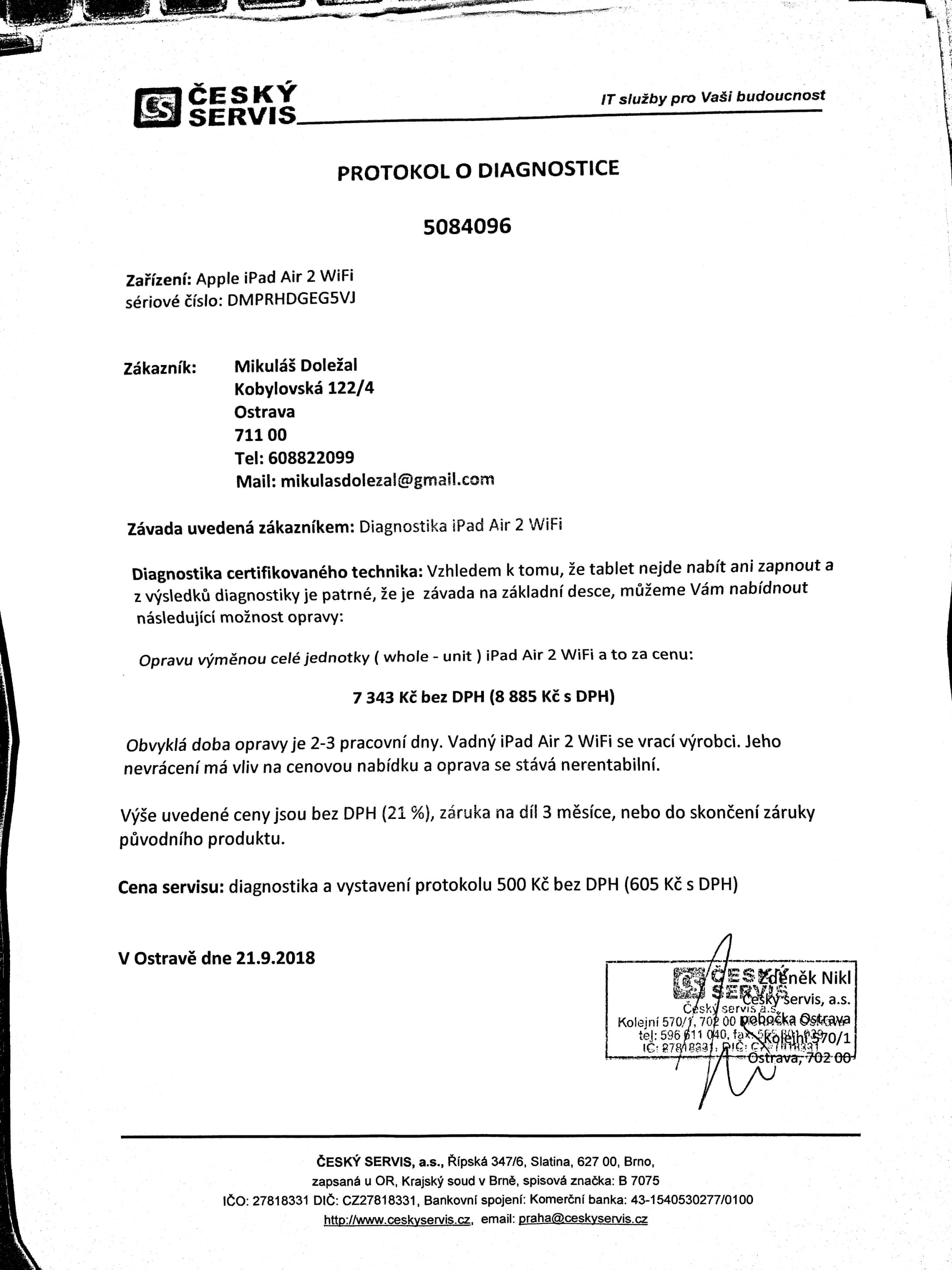 Prodám iPad Air 2 šedý, Ipad přestal z ničeho nic fungovat, zašli jsem do servisu a po záruce se pokazila základní deska. Všechny jíné komponenty jsou netknuté.