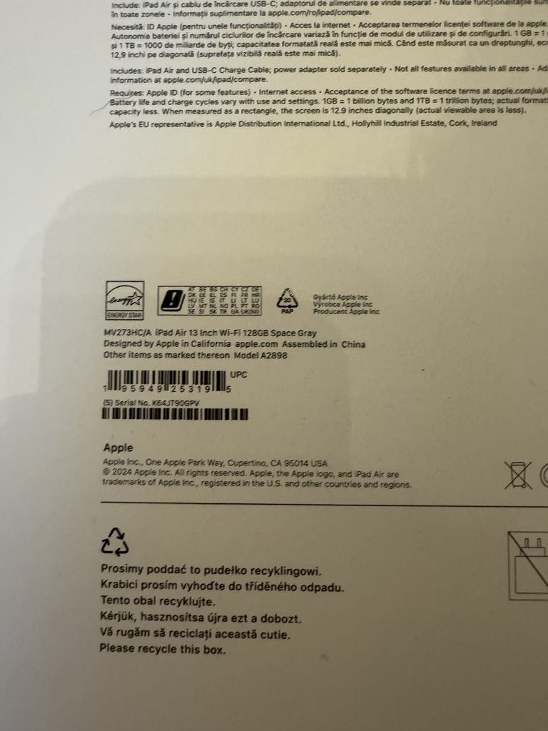 Prodám nový nerozbalený Apple iPad Air M2 13" 128 GB (2024) Vesmírně šedý – MV273HC/A. iPad lze na místě rozbalit. Jde o českou distribuci. Na iPad nelze uplatnit odpočet DPH a nabízím ho pouze s roční omezenou zárukou od Apple (srov. např. https://mobilegear.cz/blog/navody/rocni-zaruka-od-apple-jake-vady-pokryje-a-jak-zjistit-jestli-ji-muzu-vyuzit). Osobní předání.