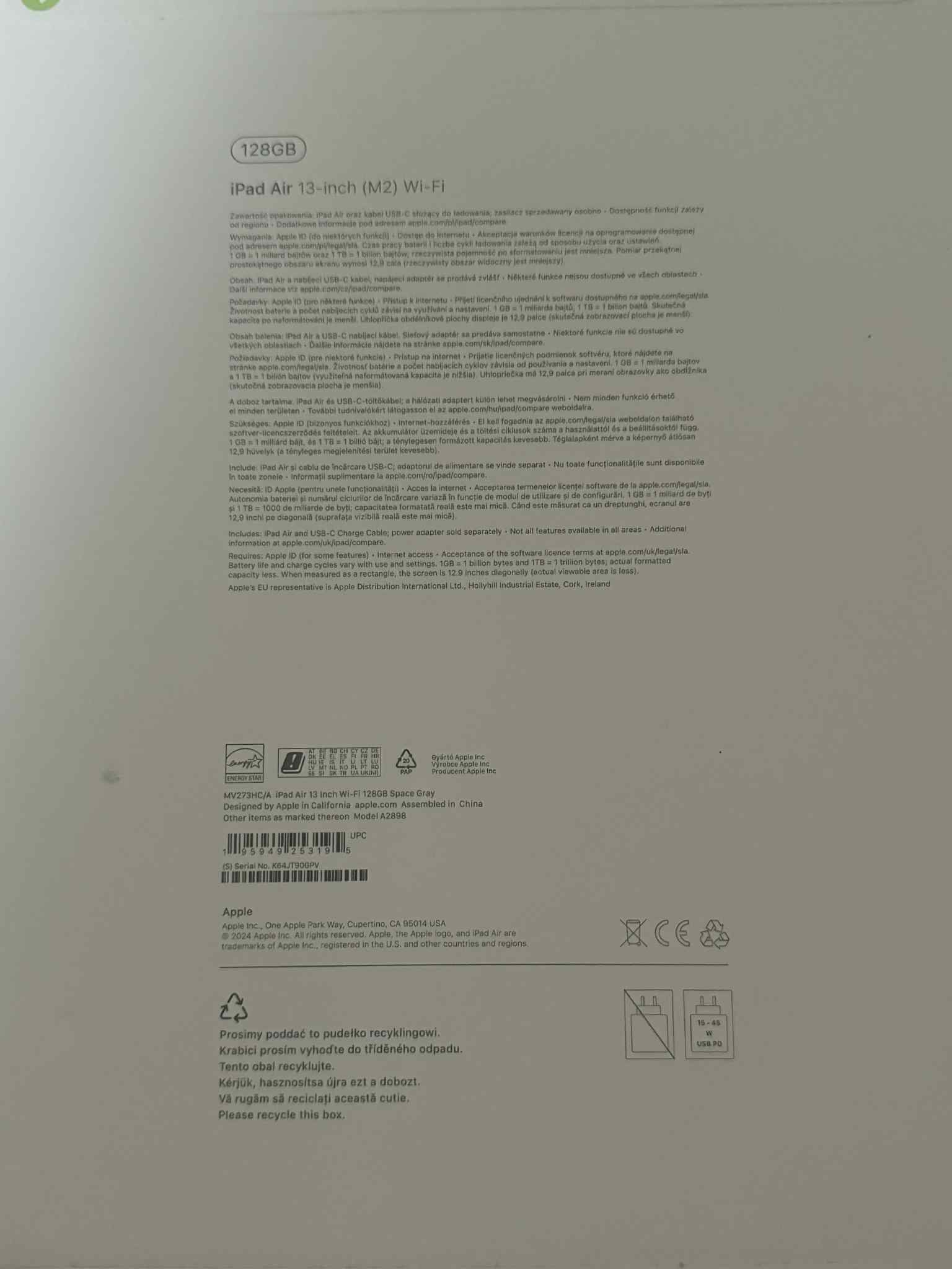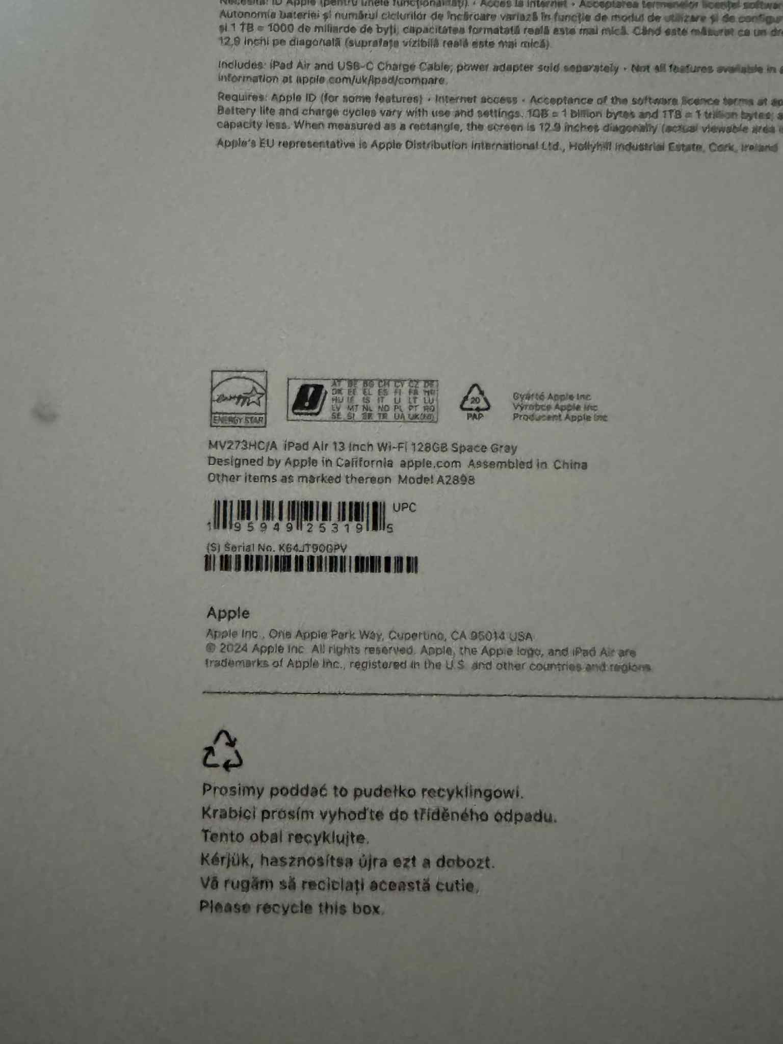 Prodám nový nerozbalený Apple iPad Air M2 13" 128 GB (2024) Vesmírně šedý – MV273HC/A. iPad lze na místě rozbalit. Jde o českou distribuci.