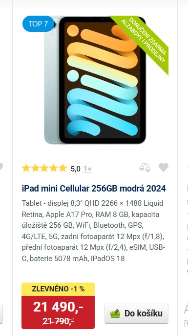 Prodám Ipad mini 7 – 2024, čip A17Pro, 256GB, Cellular.