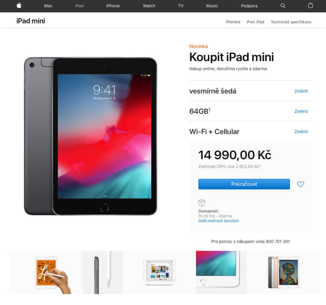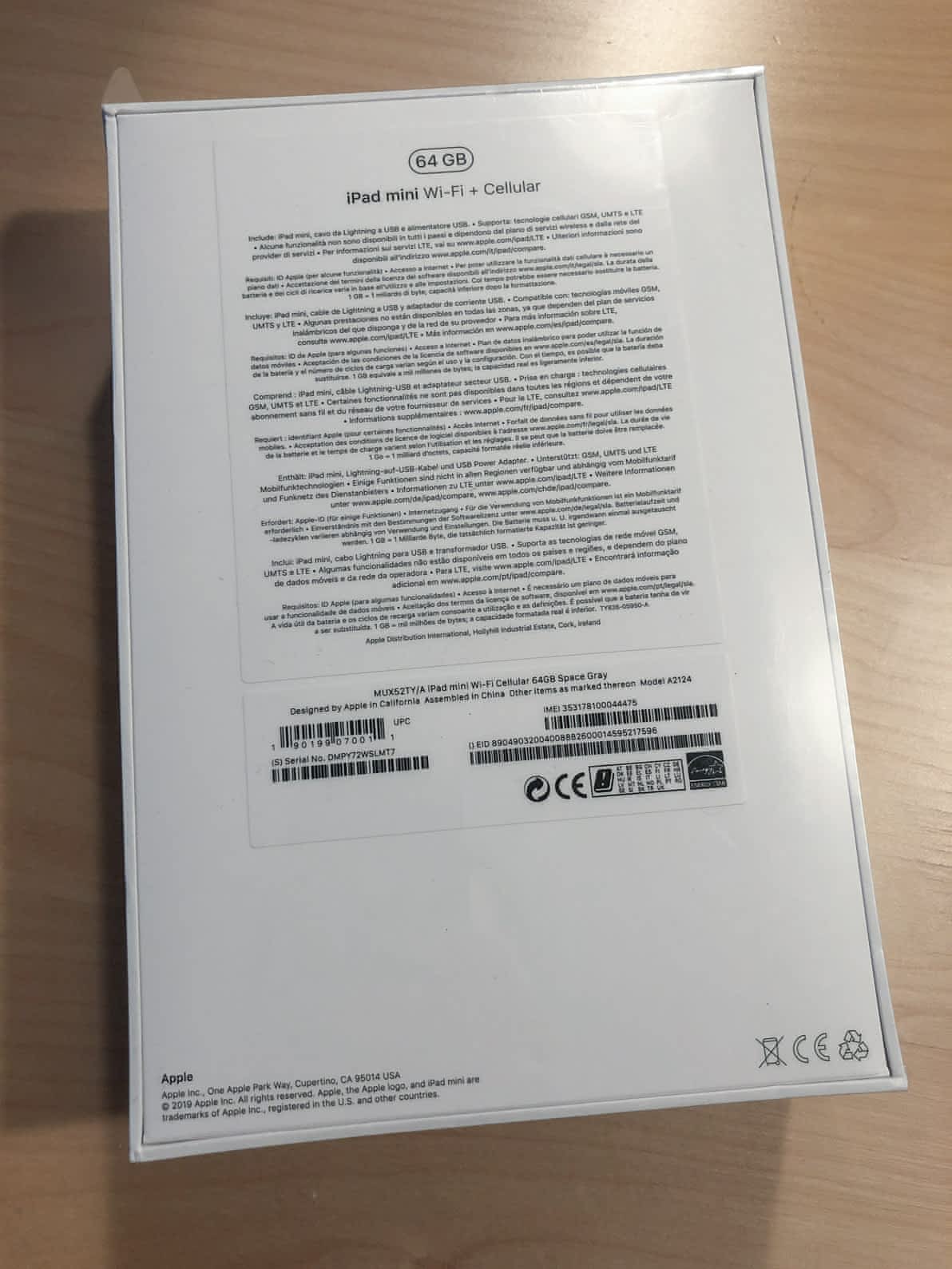 Prodam novy, nerozbaleny Apple iPad Mini posledni 5. generace, 64GB Wifi+Cellular (tedy 4G verze pro sim kartu). Barva Space Gray.