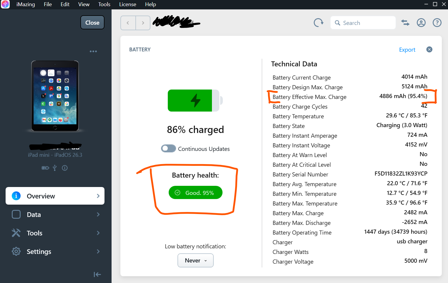 – kondice baterie: 95 %