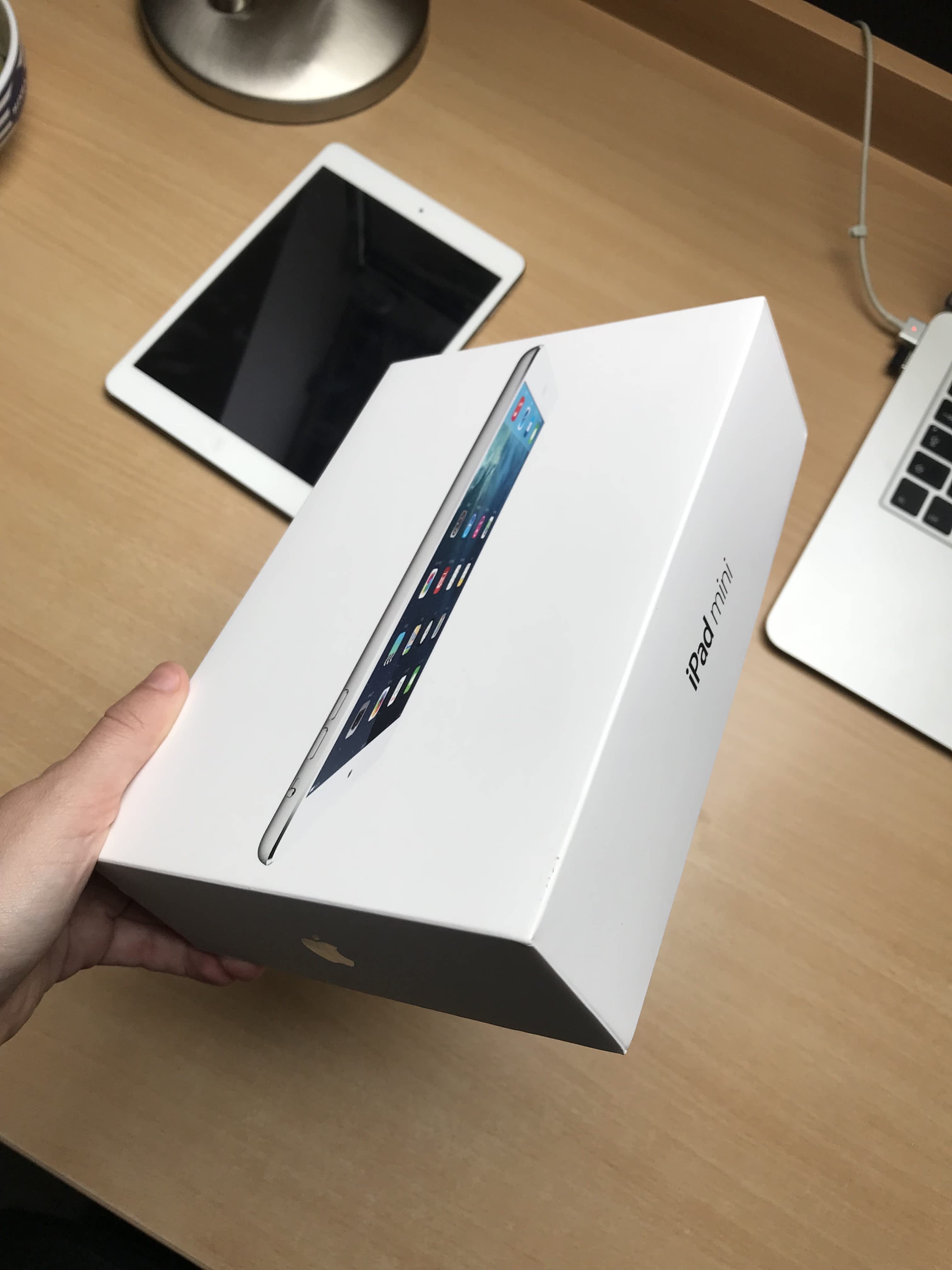 Prodám apple iPad mini 1. generace v originálním balení. IPad má retina display, 32GB paměť, podporuje Wi-Fi a Bluetooth, ve stříbrné barvě. Součástí je síťový USB adaptér do zásuvky 10W (viz. foto), chybí kabel Lighting-USB (klasický apple kabel, který je například i u iPhonu). Navíc dva kryty a jeden obal. IPad není poškozený ani poškrábaný, funguje v pořádku. Možnost osobního předání v Praze, případně zaslání.