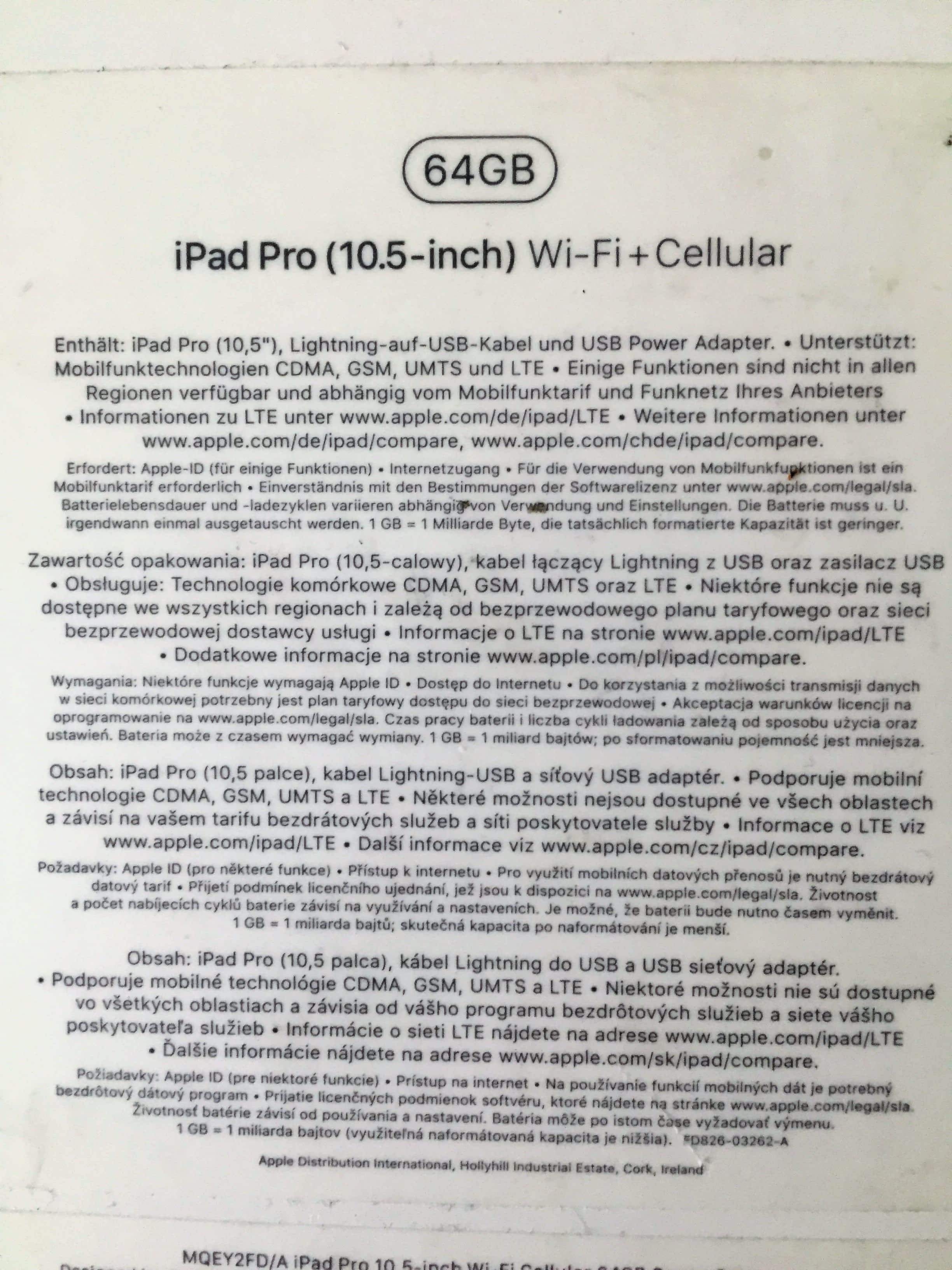 iPad pro 10.5 64GB Wi-Fi+ cellular