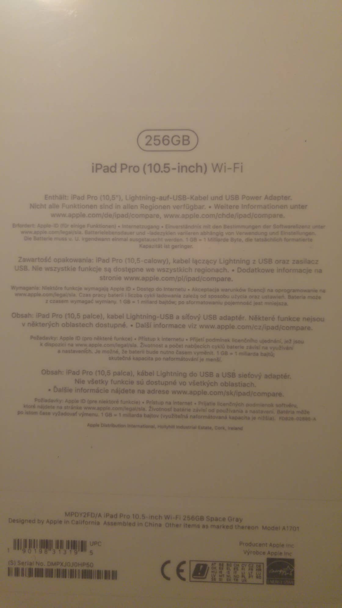 Prodám nový, nerozbalený iPad Pro 10,5" WiFi 256GB + Smart Keyboard (také nerozbalená) k němu zdarma (hodnota 4.700Kč).